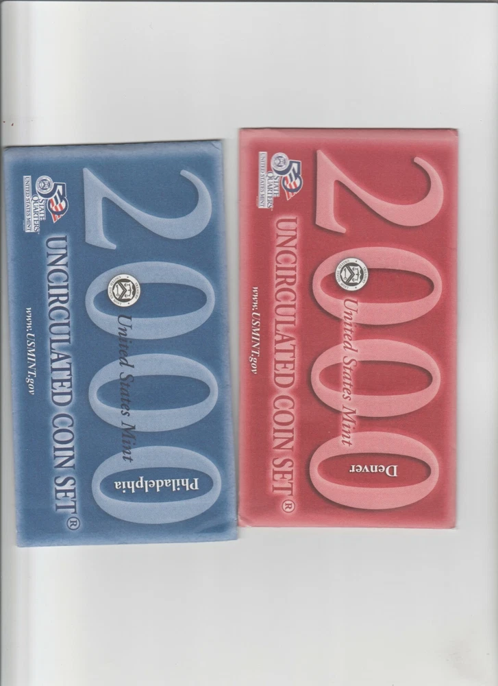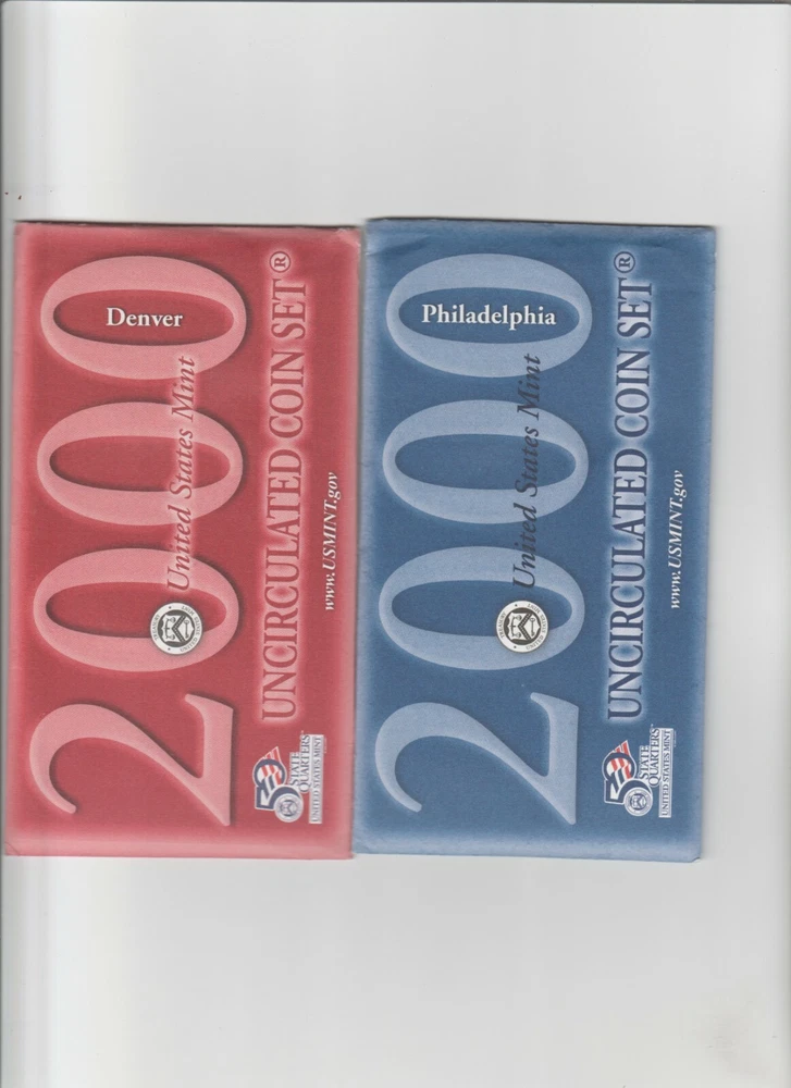 Denomination:1C 5C 10C 25C 50CCountry/Region of Manufacture:United StatesSeller Notes:“2000 P& D sets uncirculated in mint packaging with coa 20 coins total”Composition:Copper CladCirculated/Uncirculated:UncirculatedCertification:U.S. MintStrike Type:BusinessMint Location:Philadelphia - DenverGrade:UngradedYear:2000