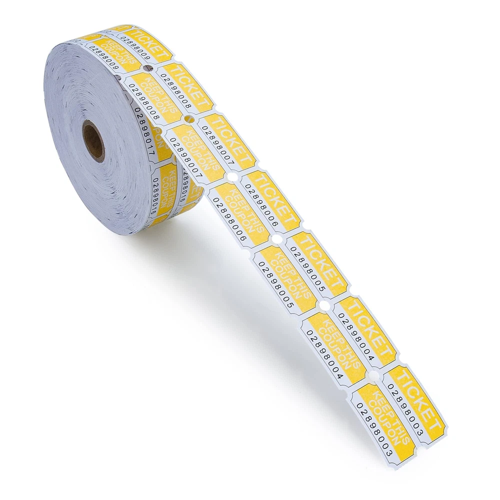 2000 Raffle Tickets, Double Rolls, Double Roll (Yellow) SIZE AND COUNT:2000 Pairs of 2” x 2” double tickets, each pair with a deposit ticket and keep ticket, and split into 2” x 1” halves-yellow CONSECUTIVE NUMBERS:consecutive numbers are printed in edge of raffle tickets,which avoid fake tickets sneak into these tickets and make counting more efficient. EASY TO TEAR:There are perforated lines between raffle tickes,so that it's very easy to tear apart. EASY TO WRITE:Name/Address/City/Phone can be filled in the back of raffle tickets which be printed "TICKET".These raffle tickets include deposit tickets and keep tickets. SCENARIOS:These raffle tickets are great for 50/50 raffles,giveaways,fair,carnivals,drawings,door prizes,events,trade shows and so on. Add some excitement to your party or social event with this Double Roll of Raffle Tickets. Our consecutively numbered double tickets include 2000 tickets per roll and each ticket has a tear-off ticket stub. Our roll of tickets are perfect for raffles, fair and carnival games, school dances, prize drawings, admission tickets, and more. Shipping We offer FREE shipping on all orders! We ship within Three business days of payment, usually sooner. We use a selection of shipping services such as UPS, FedEx, USPS etc. We only ship to the lower 48 states, no APO/FPO addresses or PO Boxes allowed. Local pickups and combined shipping options are not provided at this time. Return You can return a product for up to 30 days from the date you purchased it. Any product you return must be in the same condition you received it and in the original packaging. Please keep the receipt. Payment We accept payment by any of the following methods: PayPal Please pay as soon as possible after winning an auction, as that will allow us to post your item to you sooner! Feedback Customer satisfaction is very important to us. If you have any problem with your order, please contact us and we will do our best to make you satisfied. Contact Us If you have any queries, please contact us via ebay. We usually respond within 24 hours on weekdays. Please visit our eBay store to check out other items for sale! Thank you for shopping at our store.