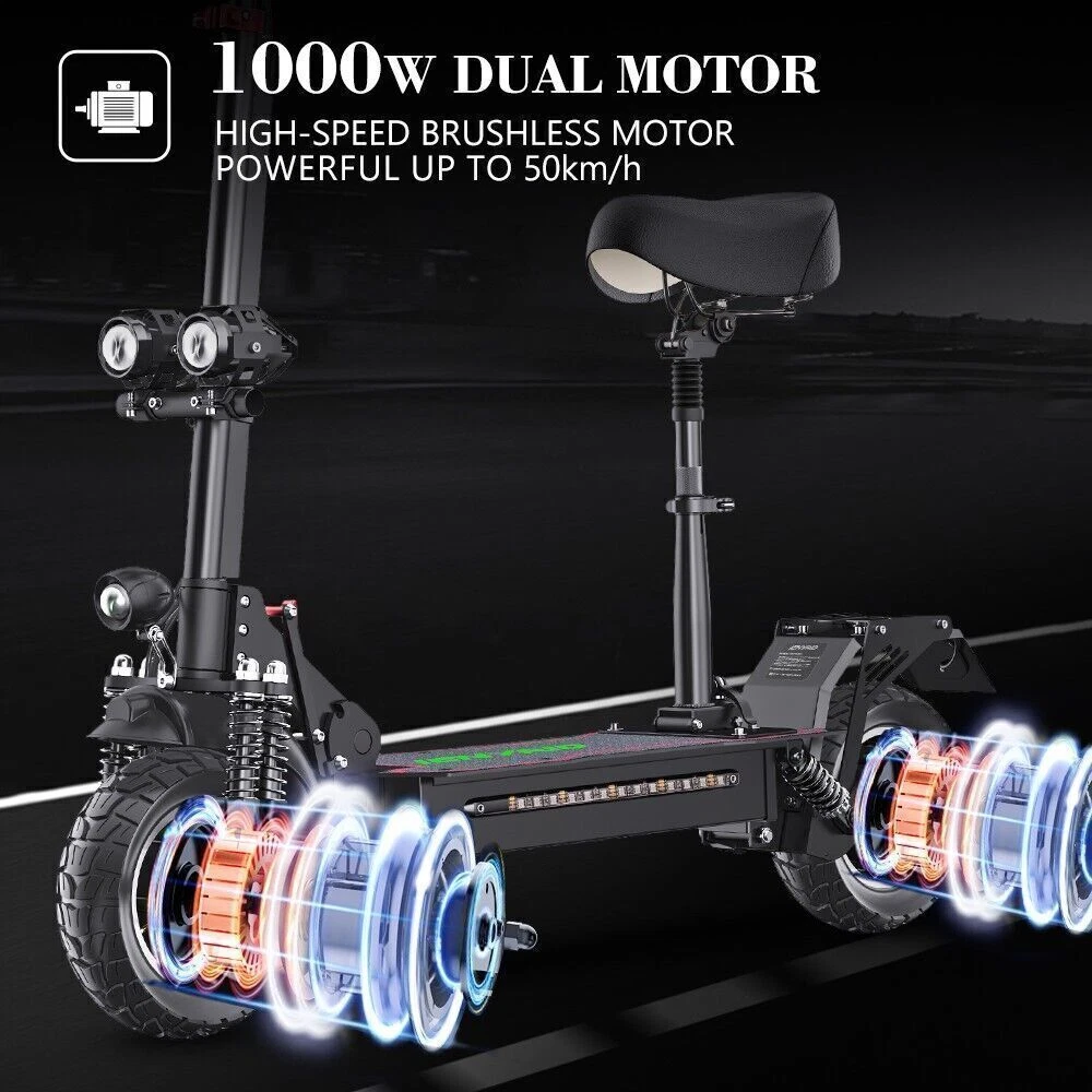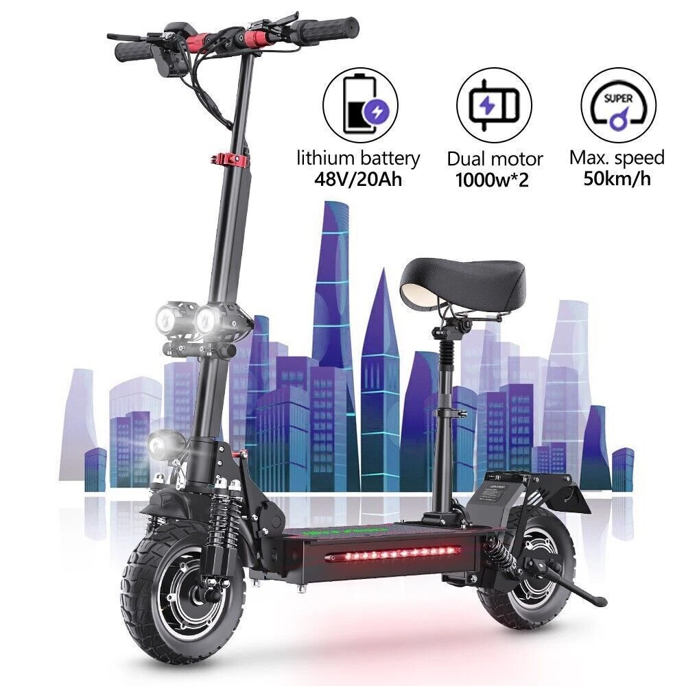 2000W Electric Scooters Dual Motors 48V 20Ah 31mph 10''Folding Off Road eScooter