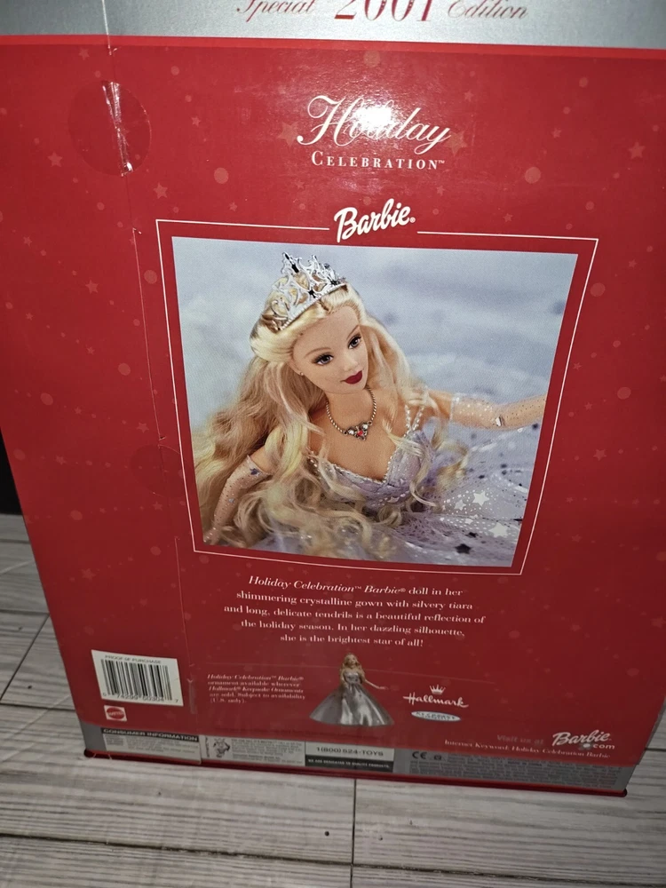 2001 Holiday Celebration Barbie Doll Mattel Special Edition Collectible #50304. Packaging has some wear from age and storage. See pictures. Sold as is.