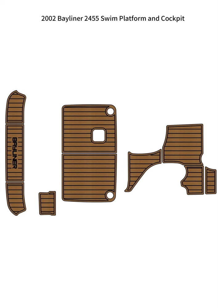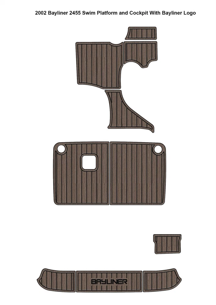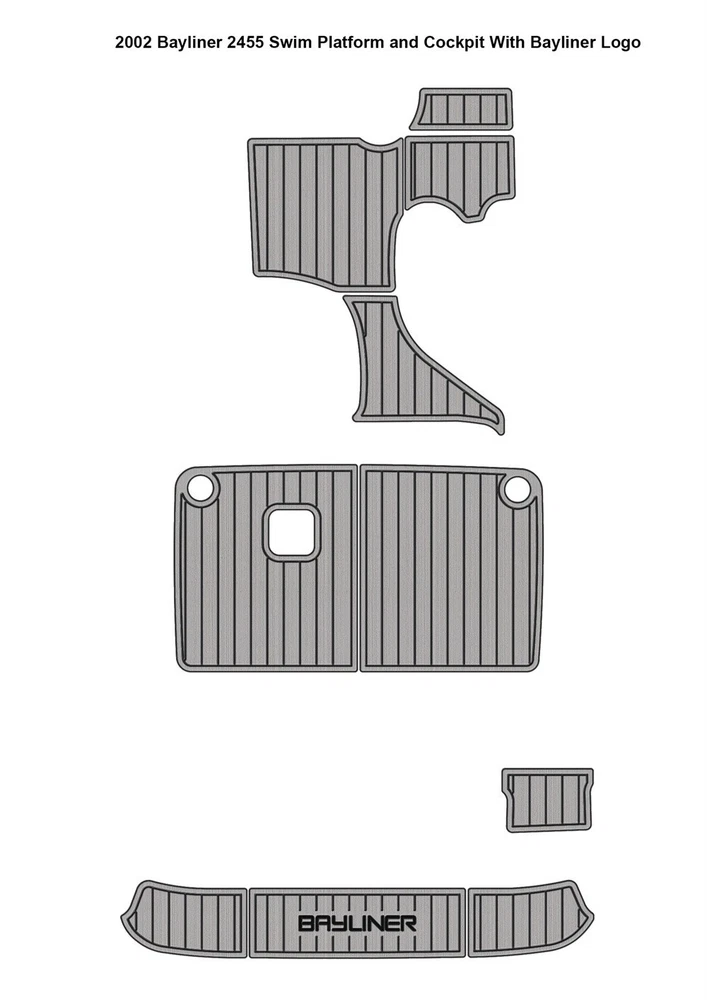 2002 Bayliner 2455 Swim Platform Cockpit Boat EVA Foam Faux Teak Deck Floor Pad Mat Please be aware that we can only make this boat floor by the first listing drawing. Before you order it, please double check the listing drawing outline shapes with your boat to make sure they can fit your boat well. As long as the floor pad outline shape can match your boat deck layout, it should fit well.We will not be hold responsible if the listing drawing floors do not fit your boat well because you do not double check our listing drawing. We can only make sure that the floors will be cut exactly by the listing drawing. If you are not sure if the drawing can fit well with your boat, please send us some photos of your boat deck layout or a short video to show your boat deck layout from stern to bow so we can help you to confirm the fitting. The floor comes with marine backing adhesive.It is peel and stick installation.You just need to peel off the white protection paper and put it down. You do not need to buy glue to install it. We offer 1 year warranty for all our boat floors. The EVA floor is 1/4"(6mm) thick two-color pad. You can choose your colors, texture and faux teak option. Additional custom text logos can also be incorporated on EVA floor. All routed logos and beveled edges will show the bottom color selected. All EVA floors come with marine backing glue. All EVA floors listed on our online store are "made to order" and not stocked so please allow up to 2-3 weeks for delivery. EVA floor fabrication time is about 4-5 days, then it will take about 7-10 days’ time to ship and deliver to your order shipping address.After you order it, please double check your order shipping address to make sure all the shipping address, postal code, city name and contact phone number are all correct. We will ship all orders by express shipping such as DHL, FedEX, USP or EMS express. We will choose the shipping courier as we see fit. Color choices: #1 Brown+Black #2 Dark Brown+Black #3 Brown+White #4 Grey+Black #5 Dark Grey+Black #6 Grey+White #7 Grey+Blue #8 Grey+Purple #9 Grey+Red #10 Black+White #11 Black+Red #12 Black+Blue When you order it, please tell us the color you want for top layer and bottom layer. Additional custom text logo fee:50 USD/ea. Before you order it, please verify the dimensions of the product drawing and confirm that it matches your boat and understand that this cannot be returned without a restocking fee of 30%. We can also make the custom EVA teak decking by the template drawing or full size template that you can supply to us. The listing price does not include any destination duties/taxes/custom fees/etc. that will be due when the product arrives at destination countries/regions. It is the customer's responsibility to pay for all custom duty/taxes/custom fees if any . class="extend--iframe--to7hHIV" data-spm-anchor-id="a2g0o.detail.0.i2.73c9Vu7qVu7qIo" data-spm-act-id="a2g0o.detail.0.i2.73c9Vu7qVu7qIo" style="box-sizing: border-box; -webkit-tap-highlight-color: transparent; outline: 0px; margin: 0px; padding: 0px; height: 46293.8px; position: absolute; top: 0px; visibility: hidden; width: 1067.4px; z-index: -1;">