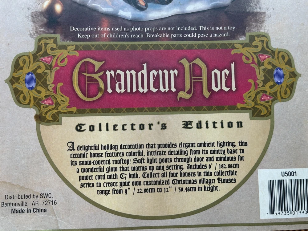 Vintage 2002 Grandeur Noel Christmas Lighted Ceramic Holiday House Collectors Edition Hand Painted.In like new condition-no scratches,no cracks,no chips.No broken or missing parts.It comes with original box and package. WE OFFER COMBINED SHIPPING AND MULTI-ITEM PURCHASE DISCOUNTS.IF YOU HAVE ANY QUESTIONS, PLEASE LET US KNOW