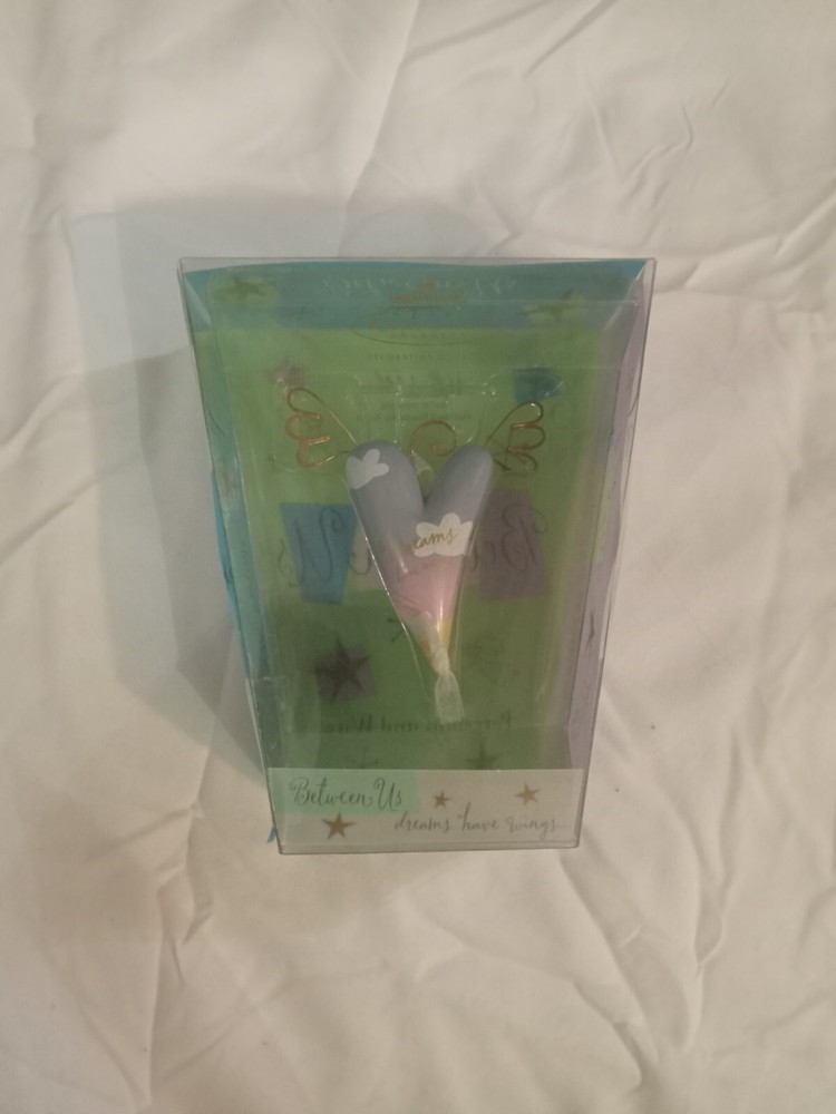 This 2002 Hallmark Between Us Porcelain Wire Christmas Ornament is a beautiful addition to your holiday decor. The ornament features a heart-shaped design with a dreamy subject and is made of high-quality porcelain material. It is small in size and multicolored, making it suitable for any family recipient. The ornament is an original and artist-designed piece that is perfect for collectors and enthusiasts alike. It comes with a set that includes only one ornament and is not a vintage or licensed reproduction. The ornament is perfect for anyone who wants to add a touch of friendship to their Christmas decor.