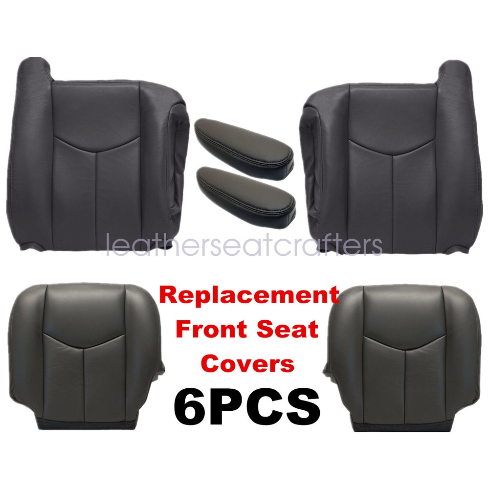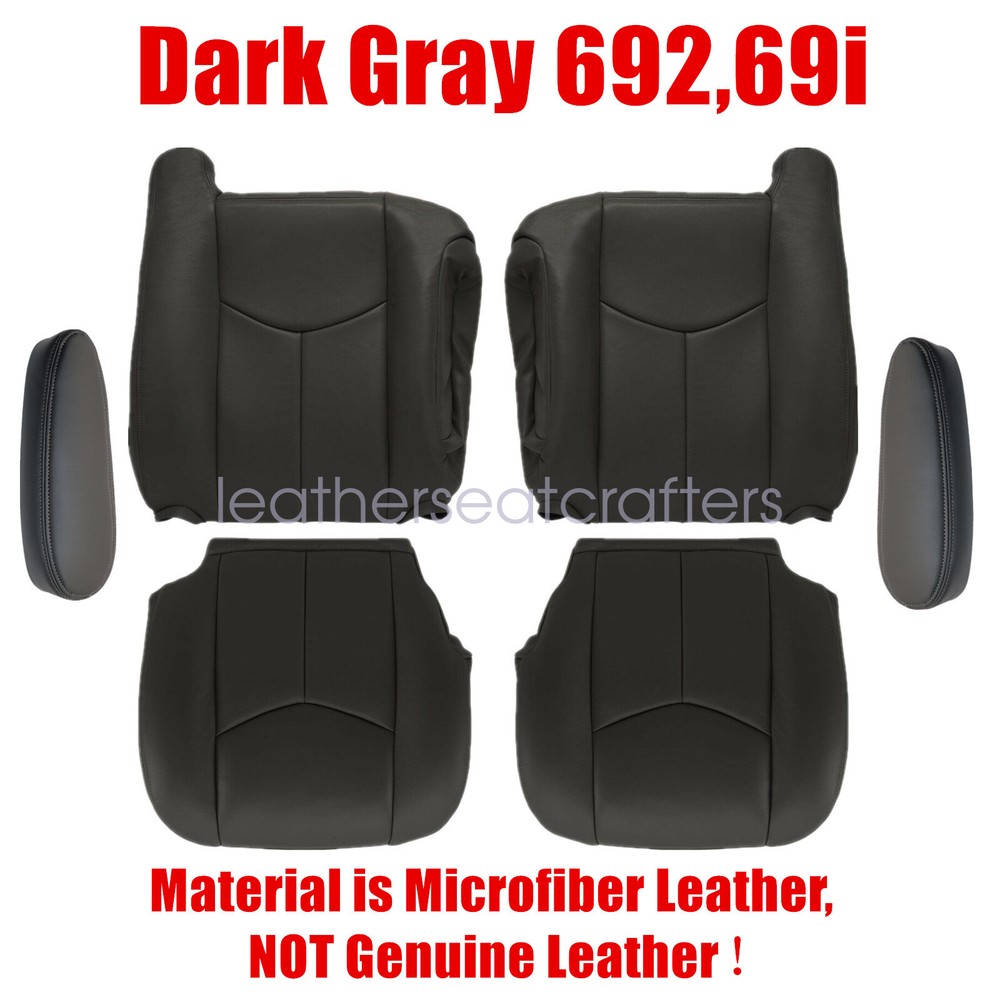 Front Bottom & Top Seat Cover For 2003-2006 Chevy Avalanche Silverado Gray 692 Details Replacement For 2003-2007 Chevrolet/GMC Silverado, Avalanche, Sierra Driver & Passenger Bottom & Back Seat Covers & Armrest Cover Dark Gray 692,69i NOTE: Material is Microfiber Leather,NOT Leather! Direct Replacement Fits Front Driver & Passenger Side Actual Replacement Cover. NOT A SLIP ON or PULLOVER. You will remove the old cover & then install the New Cover. Fitment: 2003 2004 2005 2006 2007 Chevy/GMC Silverado, Avalanche, Sierra 2003 Chevy Avalanche, Silverado & GMC Sierra 1500 2500 3500 HD. 2004 Chevy Avalanche, Silverado & GMC Sierra 1500 2500 3500 HD. 2005 Chevy Avalanche, Silverado & GMC Sierra 1500 2500 3500 HD. 2006 Chevy Avalanche, Silverado & GMC Sierra 1500 2500 3500 HD. 2007 Chevy Avalanche, Silverado & GMC Sierra 1500 2500 3500 HD Classic. And MORE Model Specification: Name: Driver & Passenger Side Leather Seat Cover & Armrest Cover Color: Dark Gray Color Code: " 692 or 69i or 69v " Located in your Glove Box Sticke Material: Microfiber Leather,NOT Leather! Heated Seats: Fits Heated Seats and Non Heated Seats Power Seats: Fits Power Seats and Non Power Seats Vehicles Inner Liner: 1/2 & 1/4 Inch Padding like Packing Included: Driver & Passenger Replacement Leather Seat Cover (2x Bottom Seat Cover & 2x Back Seat Cover) Driver & Passenger Replacement Armrest Cover Tips: This Driver & Passenger seat cover & Armrest Cover, built to factory specs with Quality Microfiber Leather to match the Interior of your vehicle! Our product is exactly the same as your existing cover and guaranteed to fit perfectly on your seat foam Pad. Any wrinkles seen in the pictures is from being in a box and guaranteed to disappear once installed Correctly. Please note this item is a replacement, not a slip on or pull over. (Foam pad and frame are not included). The boxing/skirting is vinyl sewn onto foam like . Note: Actual Replacement Cover. NOT A SLIP ON or PULLOVER. You will remove the old cover & then install the New Cover. Communication is the best way to solve the problem. If you have any problems after purchasing, please contact us in time, before opening return or case. Shipping policy: Payment: Returns: About us: Shipping policy: 1.Orders are usually shipped within 24 hours after your payment(except weekends & official holidays). You can log on to eBay to check your logistics tracking number. 2.Please make sure to provide us with correct,precise and detailed shipping address before purchase, and cannot change it once purchased. Payment: PayPal payment accepted only.Please purchase and pay for the item through the eBay. Returns: 1.If any item is defective upon receipt or do not work, please contact us for the condition,we will provide a solution for such cases. 2.Return is accepted within 30 days after the buyer receiving the item. About us: 1.Thanks for purchasing in our store,if you have any questions, please contact us immediately. We will provide you with the high quality service. 2.If you are satisfied with our products, please give us a positive feedback. On Dec 21, 2024 at 16:06:41 PST, seller added the following information: