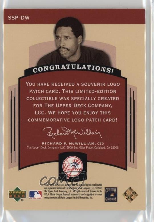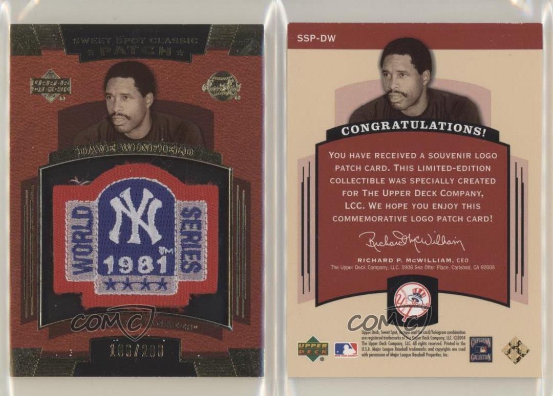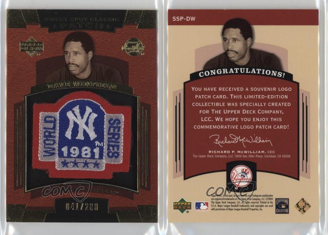 2004 Upper Deck Sweet Spot Classic - Patch - All-Star/World Series Logo 200 #SSP-DW Dave Winfield Qty Made: 200 - Baseball Card - Featuring the New York Yankees - Featuring Dave Winfield Search for more: 2004 Upper Deck Sweet Spot Classic Search for more: 2004 Upper Deck Sweet Spot Classic - Patch - All-Star/World Series Logo 200 View all of our Listings Auctions Buy It Now About Us Located in the beautiful Pacific Northwest, COMC (Check Out My Cards) is the world's largest consignment service for trading card singles. More than 10,000 people have used our consignment service to list over 50 million trading cards. Find out how we can help you consign your items on eBay by contacting us through eBay messaging. COMC -- "The Safe & Easy Way to Buy & Sell" Representative Image - Select Specific Item above to see image of actual item Representative Image - Select Specific Item above to see image of actual item Raw Condition for Modern Cards Unless otherwise noted, raw modern cards are listed in Near Mint-Mint condition or better. A NM-MT card appears to be Mint at first glance, but upon closer inspection, may exhibit some of the following: minor print defects (e.g. roller marks, print line, dimple), minor scratches, slight edge wear, and slight corner wear. Centering is clearly visible in the images provided and does not factor into our condition assessment. Raw Condition for Vintage Cards Unless otherwise noted, raw vintage cards are listed in Excellent condition or better. An EX card may exhibit some of the following: minor rounding of corners, surface wear, print defects, light scratches, and slight edge wear/chipping. Centering is clearly visible in the images provided and does not factor into our condition assessment. Domestic Shipping Combined shipping for multiple items is available. To receive combined shipping, please ensure all desired items are in your eBay shopping cart before proceeding to checkout. eBay limits orders to 40 items per order. We automatically combine multiple orders placed on the same day. If you place multiple orders on the same day, please contact us to request a refund of applicable shipping costs. Signature confirmation may be required on invoices over $400. All cards are protected and shipped securely. International Shipping COMC offers eBay's International Shipping (EIS) for international orders under $2,500* (see country exceptions below). All duties and import fees are paid at checkout; in the rare event that there are additional import fees upon delivery, these are borne by the buyer. EIS packages route through a shipping hub in Erlanger, KY before shipping to their final destination. Please note that EIS does not allow for combined shipments. The shipping rates are determined by eBay and cannot be adjusted. *Maximum sale price exceptions: Colombia, Kuwait ($2,000); Taiwan ($1,539); Chile, Costa Rica, Guatemala, Honduras, Trinidad and Tobago ($1,000); Antigua and Barbuda, Aruba, Belize, Dominica, Grenada, Philippines, Saint Kitts and Nevis, Saint Lucia, Montserrat, Turks and Caicos Islands ($500); Dominican Republic, El Salvador ($200). Please request a shipping quote through eBay messaging for orders that exceed the maximum sale price supported by eBay's International Shipping. You will be responsible for all duties and import fees for international orders shipped outside the EIS. All cards are protected and shipped securely. Payment COMC does not accept offers on our cards through our eBay storefront. COMC utilizes eBay’s managed payments system. If you are experiencing difficulties making a payment, please contact eBay for assistance. Return Policy Returns are only accepted on the rare occasion the item is not as described. If you are making a return, please initiate the return process through eBay so a mailing label can be provided for you. Prior to listing, our expert team carefully assessed this item to represent it accurately. Please review the description and high-definition images prior to purchasing to ensure this item meets your satisfaction. We welcome you to contact us if you have further questions about this item. Trust and Integrity COMC carefully assesses each item consigned to us to prevent fraudulent items from entering the marketplace. If you believe an item offered on COMC may be fraudulent, please contact us with details so we can investigate the issue. Items we determine are outside our supported items policy may be removed. Last Modified: 11/20/2025 8:39:31 PM PDT
