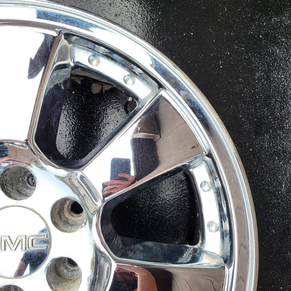 2005 - 2008 GMC SIERRA CADILLAC ESCALADE 20 INCH CHROME PLATED ALUMINUM ALLOY WHEEL. 20X 8.5, 6X139.7 BOLT PATTERN PART # 9595757 THIS IS A USED CHEVY WHEEL IN GOOD USEABLE CONDITION. WITH CHROME PEELING & OXIDATION. PLEASE SEE PICTURES. THE WHEEL PICTURED IS THE WHEEL YOU WILL RECEIVE. 6 MONTH WARRANTY, 30 DAY RETURN POLICY. FREE SHIPPING WITH UPS GROUND. SAME DAY HANDLING.