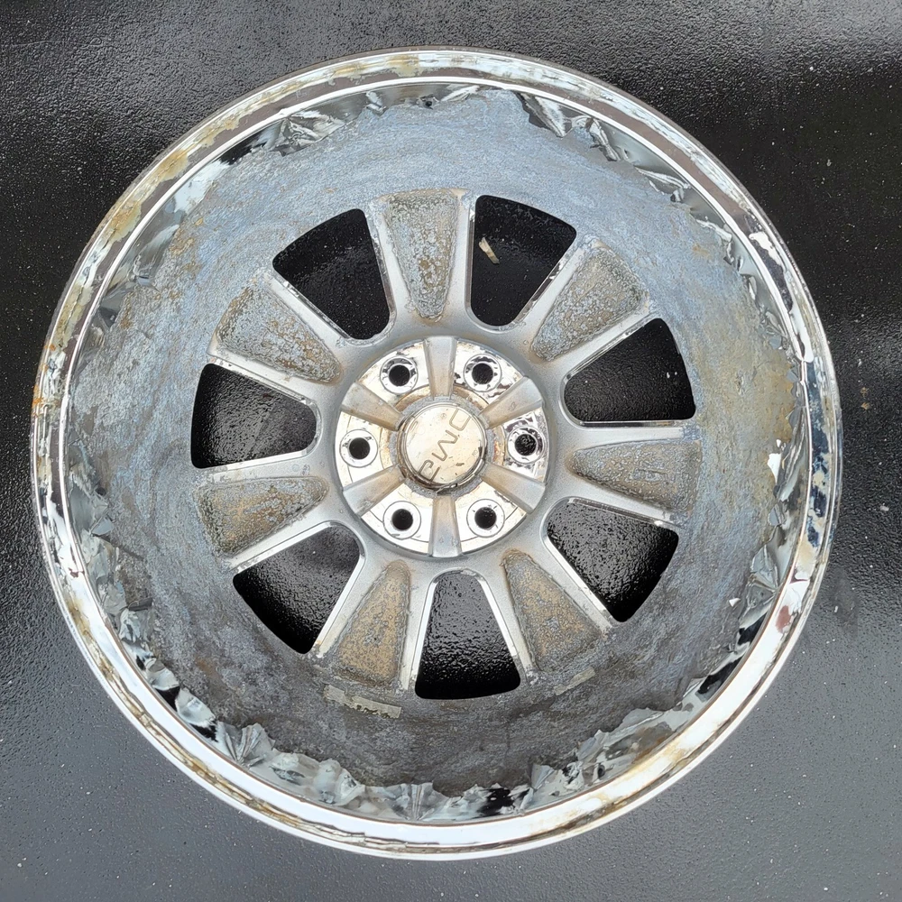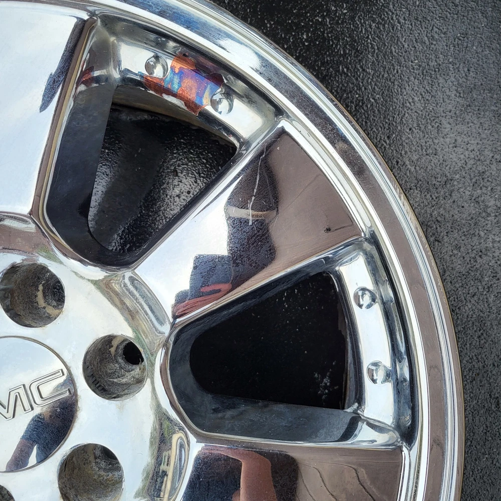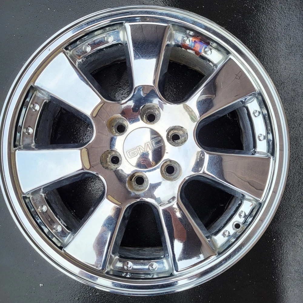 2005 - 2008 GMC SIERRA CADILLAC ESCALADE 20 INCH CHROME PLATED ALUMINUM ALLOY WHEEL. 20X 8.5, 6X139.7 BOLT PATTERN PART # 9595757 THIS IS A USED CHEVY WHEEL IN GOOD USEABLE CONDITION. WITH CHROME PEELING & OXIDATION. PLEASE SEE PICTURES. THE WHEEL PICTURED IS THE WHEEL YOU WILL RECEIVE. 6 MONTH WARRANTY, 30 DAY RETURN POLICY. FREE SHIPPING WITH UPS GROUND. SAME DAY HANDLING.