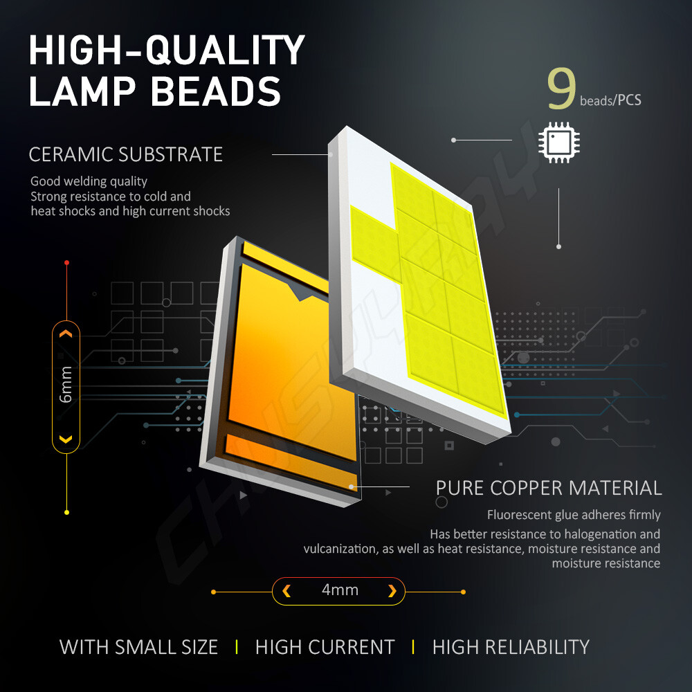 Product Parameters: Light source: 3570 Material: Aviation Aluminum Working Voltage: 9-23V Color temperature: 6000K Lumen: 8000LM Life: 50000 hours Working environment: -40℃~80℃ Waterproof grade: IP67 Product Performance: 1)SUPER BRIGHT 3570 LED CHIP 0.5mm thinnest LED spacing,the shorter the distance the better spotlight,super focused beam design,no dark spot. 2)ROTATABLE DESIGN Removable collar ring,you can now adjust the beam angle to a perfect one.Fit for 98% headlamp covers on market 3)COOLING SYSTEM,FOUR WAYS HEAT DISSIPATION Copper heat conduction;Evaporation from aviation aluminum;Polyhedral grid;Built-in turbo fan,silent and high speed. 4)IP67 WATERPROOF DESIGN For the most extreme conditions,with explosion-proof,shockproof,hign temperature hign pressure and other charateristics. 5)Small outer diameter, easy to install, high brightness, very concentrated, and fast heat dissipation. 6)Wider and further illumination areas than halogen lamp,300% brighter than traditional halogen lamps. 7)White light source, easy to accept by human eyes, will not feel tired Package Included: 2x LED 9007/HB5 headlight bulbs high beam 2x LED H11/H8/H9 foglight bulbs New and old packaging will be shipped randomly Notice: 1.The product must be installed by professionals. Please disconnect the car battery before installation. Please check the wiring after installation. 2.Please reserve enough space in the headlight housing for installtion and heat dissipation. All our products are manufactured under the strictest quality control. If the project is not functioning properly, please contact us by email first. If you have any questions, please contact us in time.