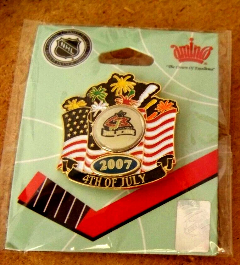 2007 Columbus Blue Jackets Fourth of July pin "4th of July" on the black ribbon at the bottom and "2007" just above. This gold tone, post and butterfly clip backed pin, measures about 1.2" wide. Don’t forget to click on my "Stores" link, next to my eBay name, to see other items I currently have listed for sale, or you can copy and paste this address into your browser: stores.ebay.com/highcountrycollectibles SHIPPING INFORMATION Shipping to U.S. addresses is FREE! HIGH COUNTRY COLLECTIBLES Since 1989 – A LEADER IN THE DENVER SPORTS MEMORABILIA MARKET. Check out my other auctions and listings, and keep an eye out for the different, unusual, and EXCLUSIVE items available nowhere else but from High Country Collectibles.