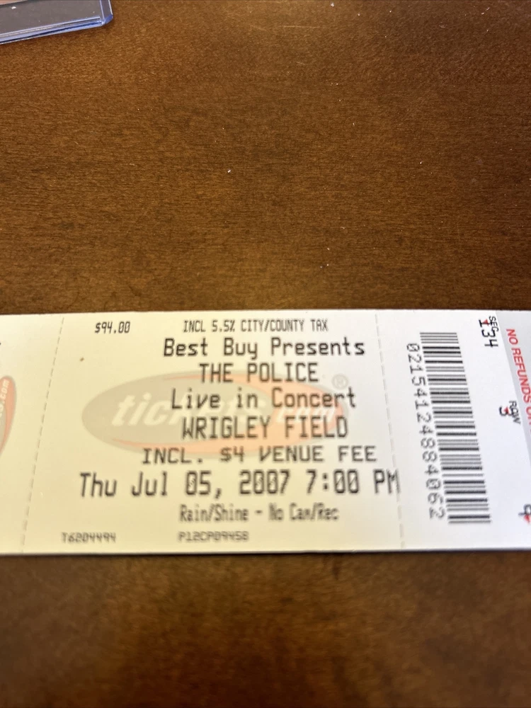 2007 Police Sting Last Chicago Concert Ticket Full Unused