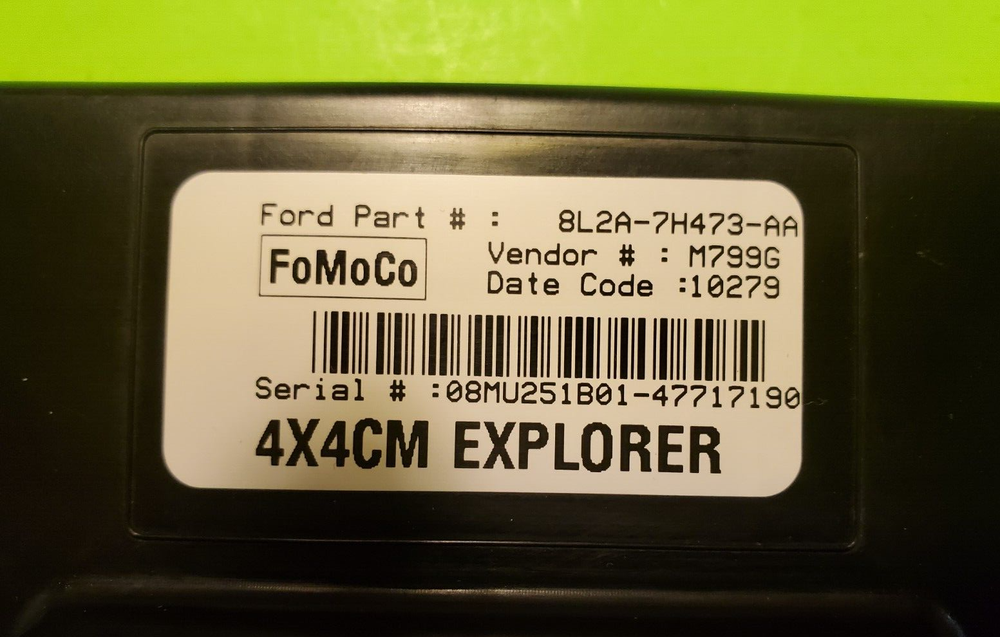 2007-2009 FORD EXPLORER TRANSFER CASE CONTROL MODULE ( TCCM ) FORD Part # 8L2A-7H473-AA Tested all all functions work properly. This module will work on 2007-2009 FORD EXPLORER that have this same part #. Proper part match up is the responsibility of the Buyer. Make sure this is the part # that you need. Please consult your mechanic, dealership, or parts interchange as necessary. WHY PAY MORE? A GREAT MODULE AT A GREAT PRICE!!! This module may require programming, flashing, or coding in order to work on your vehicle. It's the buyers responsibility to research installation requirements. YOUR MODULE WILL BE WRAPPED AND PROTECTED TO ENSURE SUCCESSFUL AND UNDAMAGED DELIVERY. WE SHIP QUICKLY! ORDERS USUALLY SHIP WITHIN 24 HOURS OF CLEARED PAYMENT. BUYER PAYS EXACT SHIPPING COST! WE DO NOT MARK UP SHIPPING FEES OR CHARGE A HANDLING FEE AS SOME OTHER SELLERS DO. EXPEDITED SHIPPING VIA USPS PRIORITY MAIL. FEEL FREE TO CONTACT US VIA EBAY SHOULD YOU HAVE ANY QUESTIONS OR CONCERNS. HAPPY MOTORING !!!