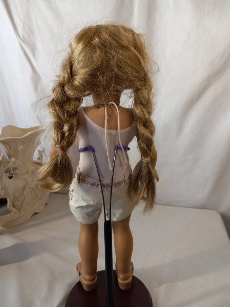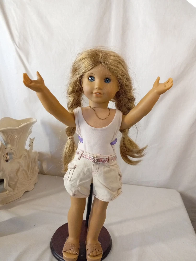 This is a vintage 18-inch American Girl doll manufactured by Pleasant Company in 2008. The doll has blue eyes, Brownish Blonde hair and medium complexion. It comes with an outfit and shoes. This is an original play doll from the American Girl franchise. Please check out my store Pops Treasure Finds. Please follow me never know what I come across. I buy abandoned storage lockers. Buy Estates and yard sales. Hope you enjoy. Thank you