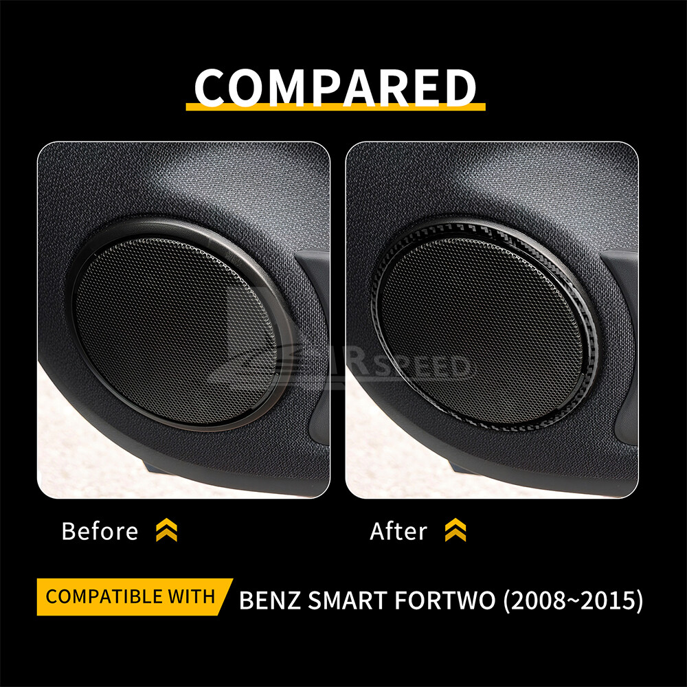 Product Detail Brand: AIRSPEED Type: Door Speaker Panel Cover Sticker Material: Carbon Fiber Color: Black Quantity: 2PCS Use: Decoration Fixation: Stick up Description Products are made of high-quality carbon fiber material with nice textures Products are customized according to original sizes which fit perfectly Fitment For Benz Smart Fortwo 2008-2015 designed by