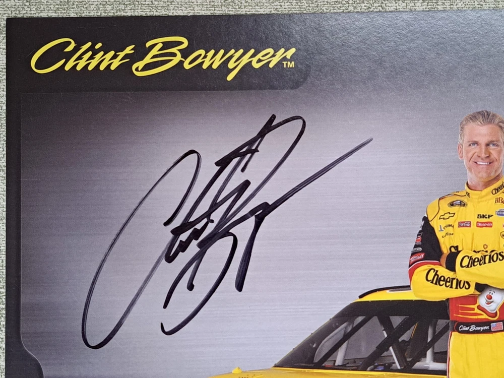 2009 CLINT BOWYER autographed NASCAR 8×10 Photo Card Cheerios Chevrolet. I'm the original owner of this piece and witnessed Clint sign this card in front of me. I worked for General Mills at the time Clint Bowyer was at the headquarters in Minneapolis for a promotional appearance. FYI...there is a slight crease in the upper right edge of the card. See pictures for the overall condition of the item. Let me know of any questions or if you need additional pictures. Thanks for your interest.