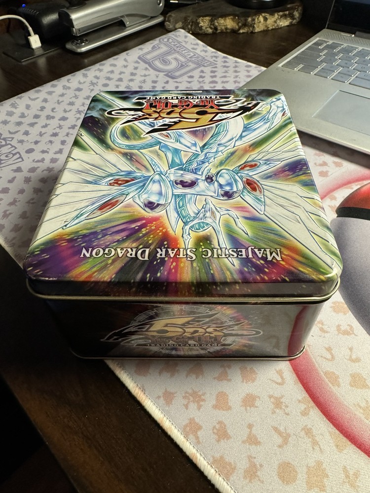 This Yugioh Majestic Star Dragon tin is a must-have for collectors! The condition is fantastic, with only minor flaws noted in the photos. Seller ships fast—payment clears in 2-3 days, then it's out the next day. Super smooth transaction, highly recommend!