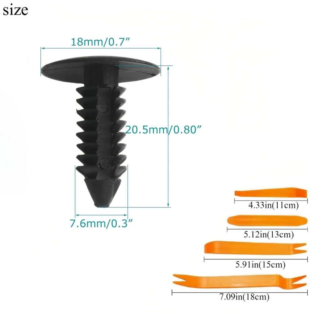 Feature: Auto car bumper clip fender Color: black only Material: plastic Fit Hole Diameter :8mm/0.31 inches Stem Length: 20mm/0.78 inches Total Length: 22mm / 0.86 inches Diameter: 18mm / 0.7 inches Fitment: GM: 1605396 1595864 Chrysler: 6030441 Ford: 388577S W705589-S300 Package: 200 pcs in one bag+4 pcs tools Note: This is the Non-OEM product accessories. 200PCS Bumper Fastener Clips+4PCS Tools Plastic Rivets Retainer Fender Push Pin Feature: Auto car bumper clip fender Color: black only Material: plastic Fit Hole Diameter :8mm/0.31 inches Stem Length: 20mm/0.78 inches Total Length: 22mm / 0.86 inches Diameter: 18mm / 0.7 inches OE/OEM Part Number: Bumper Clip Type: Bumper Application 1: Wing door card internal sealing strip trim Application 2: Nylon Christmas tree style carpet mat clip Replaced Part Numbers: Carpet, Floor, Mat, Set, Bus, Train, Aircraft, Truck, Motorcycle, Bicycle, Packaging Other part numbers: Plastic push type bumper fixing clip Widely used: Widely used on car fenders, bumpers, doors, side skirts, or other automotive surfaces. They can be used for motorcycles, buses, cars, trains, airplanes, trucks, etc. This is a non OEM product accessory. High quality material: These bumper clips are made of high-quality black plastic and are wear-resistant. Fitment: GM: 1605396 1595864 Chrysler: 6030441 Ford: 388577S W705589-S300 Package: 200 pcs in one bag+4 pcs tools Note: This is the Non-OEM product accessories. Payment Delivery details Terms of sales About us Contact us Payment We accept major credit card payments via Paypal. Payment must be received within 7 days of auction closing date. If you do not contact us or respond to our email within 7 days of auction closing date, we do not guarantee the item availability. We reserve the right to cancel any unwanted bids. Delivery details Flat rate shipping charge will be applied to the 48 continental USA States. Extra shipping fee will be charged to ship item(s) to HI, AK, PR, GU, VI, APO, FPO . Item(s) will be shipped via UPS Ground or USPS or Fedex within 3 Business days after payment is received. A Tracking Number will be upload on platform as soon as item(s) is shipped. International buyers please note, we are not responsible for any custom duties, taxes and brokerage fees. For some oversize packages, we may not be able to ship via USPS. Terms of sales All of our items are professionally made and guaranteed to fit. A professional installation is always recommended. Please send a message over eBay if you have any questions. We accept returns within 30 or 60 days after you received the item(s). All returned items must be new and in original package. The buyer will pay return shipping fees. No refund will be made for damaged parts. Shipping and handling fees and insurance fee are not refundable. About us Our warehouses are located in CA and NJ The transportation time is approximately 3-5 working days Contact us Your satisfaction is our top priority. We stand behind all products that we sell. If you have a problem with any of our listings, please allow us to work it out. Our business times are Monday-Friday 9:00- 5:00 Pacific Time. Office closes on weekends and holidays. We are striving to earn a 5- star rating with every purchase. Please take a moment to leave us a positive feedback when you receive your order. If you are not satisfied, please let us know before you leaving feedback. Please always include your purchase eBay item number in the mail whenever you have any questions.