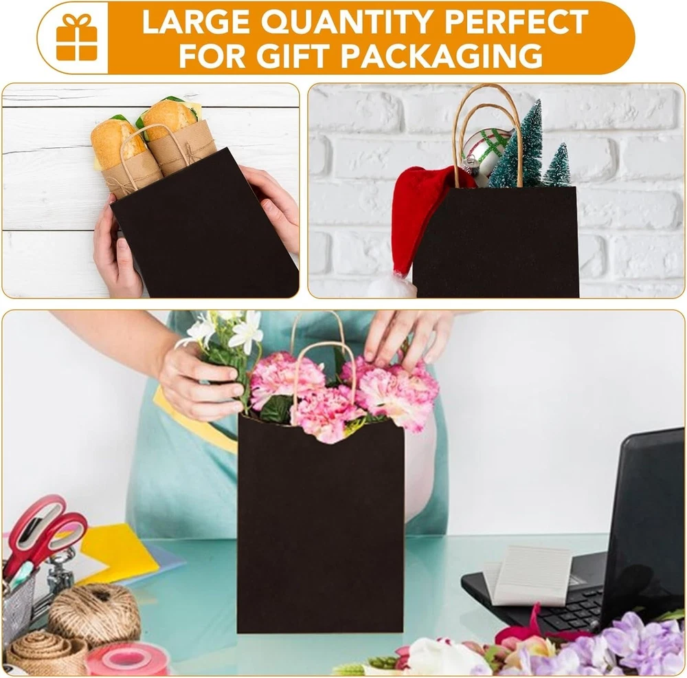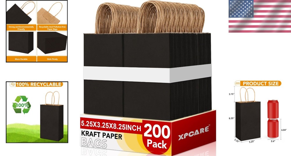 200Pcs Eco-Friendly Black Paper Gift Bags - 5.25x3.25x8.25'' Durability & Style ‹ › ‹ › ‹ › ‹ › ‹ › ‹ › ‹ › ‹ › ‹ › 200Pcs Eco-Friendly Black Paper Gift Bags Size: 5.25x3.25x8.25 inches Durability & Style Durable Quality: Crafted from robust 110gsm kraft paper, these gift bags are designed to withstand everyday use, ensuring your gifts are presented beautifully without compromising on sturdiness. Eco-Friendly: Experience the essence of sustainability with our reusable, recyclable, and biodegradable bags. Free from peculiar smells, they are a healthier, upscale alternative to plastic. Stability: The flat and stable bottom allows these bags to stand upright when filled, making it easier to present your gifts effortlessly. Versatile Applications: Perfect for a variety of occasions such as birthdays, holidays, baby showers, and retail use. Ideal for writing personalized messages for friends, family, or customers. Perfect for Any Event: These black paper bags with handles seamlessly transition from treat bags and goodie bags to elegant wedding gift bags and holiday shopping bags. DIY Creativity: Unleash your inner artist! These plain paper bags provide a canvas for your creativity—add your unique designs with drawing, coloring, or stamping. Why Choose Our Eco-Friendly Gift Bags? Elevate your gifting experience with our 200Pcs Eco-Friendly Black Paper Gift Bags. Not only do they provide durability and style, but they also embody a commitment to sustainability that resonates with modern consumers. Stand out from the crowd and make your special occasions more memorable with our versatile bags that cater to every need—from birthday celebrations to retail displays. Transform your gift-giving while caring for the planet—order your pack of eco-friendly gift bags today and begin your creative journey! Shipping Free & Fast Shipping - We offer free shipping to most of the USA with a normal delivery time of 3-7 days. However, due to the current situation, additional delivery time (up to 3 weeks) may be required for some items. Alternative Carriers - We may use alternative carriers (e.g. USPS, FedEx, UPS, etc.) to ensure your package arrives safely and on time. Due to the use of multiple carriers, we are unable to provide a tracking number automatically. Handling Time - Orders are processed and shipped within 1-2 business days of receiving cleared payment. Shipping Restrictions - Shipping to Alaska, Hawaii, Puerto Rico, Guam, and other US territories may incur shipping charges or delivery restrictions. Please contact us before ordering, or your order can be refunded/cancelled. State Restrictions - There may be restrictions based on your state of purchase. For example, certain items may not be shipped to California due to state regulations. Contact for Tracking Updates - If you require tracking updates or have any concerns about the delivery of your order, please feel free to contact us, and we will be happy to assist you. Return 30-Day Hassle-Free Returns - We want you to be completely satisfied with your purchase. If you are not, you can return the item within 30 days of receiving it for a full refund or exchange. Easy Return Process - To start a return, simply contact us and we will provide you with a prepaid return shipping label and detailed instructions. Restocking Fee - There are no restocking fees for returns. However, the buyer is responsible for return shipping costs if the return is not due to a seller's error. Refund Processing Time - Refunds will be processed within 5 business days of receiving the returned item in its condition. Payment We accept all major credit cards, PayPal, and Apple Pay for your convenience. Your payment information is secure and encrypted to ensure a safe and seamless transaction. Please complete your payment within 3 days of purchase to avoid any delays in shipping. Feedback Your feedback is extremely important to us. We strive to provide the best products and customer service possible. If you are satisfied with your purchase, please take a moment to leave us a positive review. If you have any concerns or issues with your order, please contact us before leaving negative feedback. We are committed to resolving any problems and ensuring your satisfaction. Contact Us If you have any questions or concerns, please feel free to out to our customer support team. You can contact us through the eBay messaging system. We are available Monday to Friday, 9:00 am to 5:00 pm EST, and we will do our best to respond to your inquiry within 24 hours. Buy it now and enjoy a pleasant shopping experience! Unit Quantity: 200 Material: Paper,kraft paper,110gsm paper Type: Gift Bag Size: Large Color: Black Occasion: Birthday Theme: Birthday Or Wedding Recipient: Friend Pattern: Solid Department: Adults Style: Contemporary Origin: California