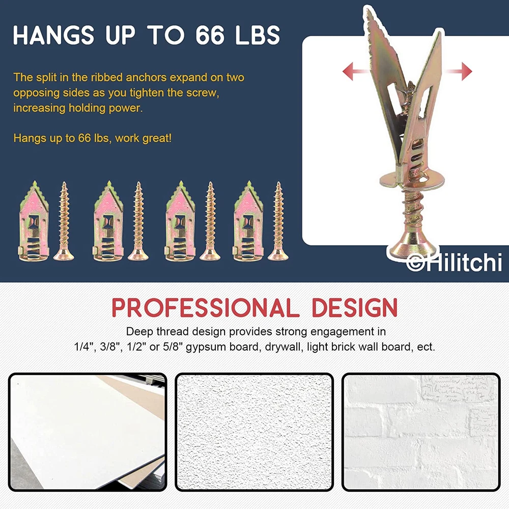 Store New Arrivals Add to Favorite View Feedback Contact 200Pcs Self Drilling Drywall Anchors with Screws Easy Application No Drill or Holes in Wall, 66 Lbs, 12 X 30Mm-100Pcs Anchors and 100Pcs Screws (Metal Anchors) Description Item model number H-4741 Item dimensions L x W x H 6.3 x 5.51 x 5.91 inches Color Bronze Product Dimensions 6.3 x 5.51 x 5.91 inches; 12.84 ounces Material Metal Anchors Size One Size ✅[QUALITY MATERIAL]: Made of carbon steel and zinc plated processed, our drywall anchors are durable to use. Our anchors kit includes 100pcs anchors and 100pcs screws, all total 200pcs. ✅[EXPENSION DESIGN] Our rib anchors would expand when you screw the screw in and hence increasing its holding power. Tapered sharp head for easy installation. Serrated on both sides to make the metal anchors provide more holding power. ✅[EASY TO USE] Compared with other plastic wall anchors, ours are easy to use, and do less damage to the wall. No hole or drilling required. What’s more, they can be easily remove for reuse and no big hole left in the wall. Anchors hangs up to 66 lbs. ✅[WIDE APPLICATION] Hammer in fixing for medium weight applications on drywall, Plasterboard, wallboard, gypsum board, sheet rock, gypsum panel. ✅[QUALITY AFTER-SALE SERVICE] If you do not satisfy with our products or if you have any questions, please come to us for help. We would work out a satisfactory solution to your problem. 12 hours response service! Hilitchi 200Pcs Drywall Anchors with Screws Self Drilling Easy Application No Drill or Holes in Wall (100Pcs Anchors and 100Pcs Screws) ADVANTAGES OF OUR METAL ANCHORS: -No need for drilling holes -Easy to install -Save your time and energy -Unique serrated designed for enhancing holding power HOW TO USE: 1.Hammer the metal anchors into the wall 2.Screw the screws through the fixture and the anchor would expand when force applied to drive the screw in 3.Tighten the screw to make it secure Suitable for medium weight applications on drywall, plasterboard, wallboard, gypsum board, sheet rock, gypsum panel. 33LB horizontal strength. Hangs up to 66lbs. ABOUT US We offer the best prices around on high quality products. Our E-store includes media such as books, movies, music and games while offering electronics, toys, sporting apparel, clothing, tools, general home, garden items and more. SHIPPING We are always working hard to ensure your package arrives as soon as possible. Please understand that some factors like weather, high postal traffic, and the performance of shipping companies are outside of our control. We offer free shipping to the lower 48 states and ship within 2 business days of payment, usually sooner. We do not accept P.O. Boxes. Please provide a physical address. For shipping outside of the continental USA, we only use eBay's Global Shipping Program.The item is shipped to KY and then sent to the rest of the world. International customers are responsible for all duties and taxes. Continue to check out in order to calculate costs for shipping the item to your country. Messages regarding eBay's Global Shipping Program MUST be directed at eBay EXCLUSIVELY. RETURNS We offer a 30-Day Return Policy on items which you are not completely satisfied with. You have the option for a full-refund or an exchange of the item. No returns are available on items shipped outside of the USA. PAYMENT We accept PayPal. CONTACT US This page content is yet to come Please ad us to your favorite seller and visit again later Thank You CUSTOMER SATISFACTION We try our very best to make sure every customer is completely satisfied. If there's a problem, message us! We're happy to help. WE ACCEPT Copyright © 2021 AutoDS. | All Rights Reserved