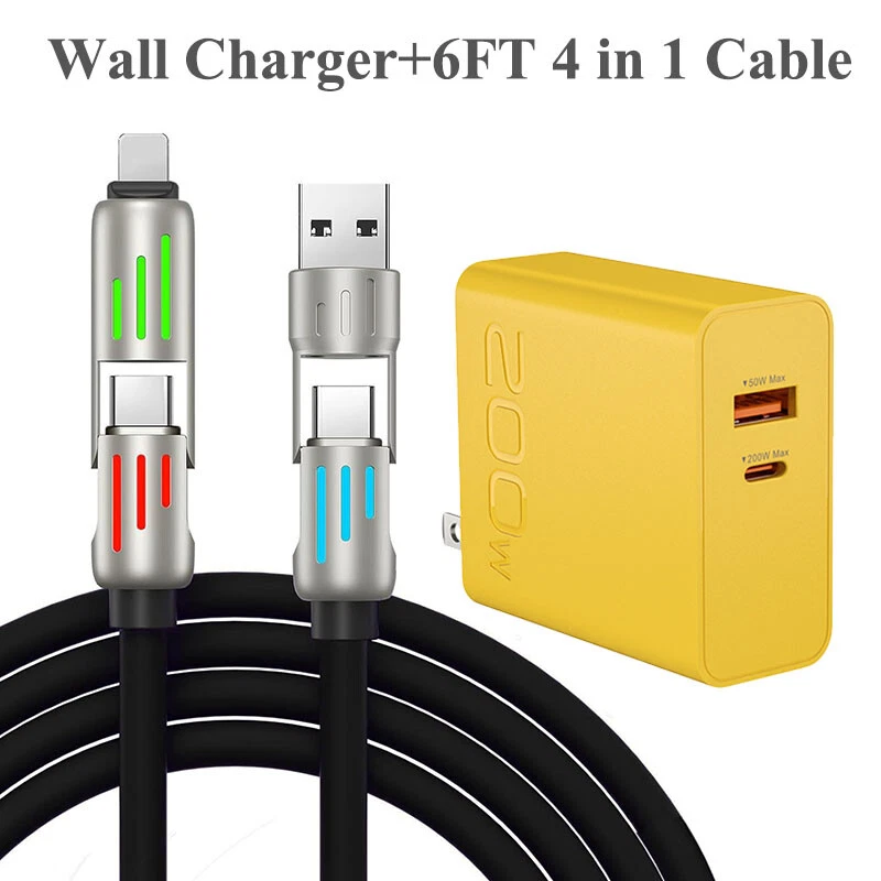 200W Wall Charger, 240W 4-in-1 USB C 6FT Fast Charging Cable For All Cell Phone