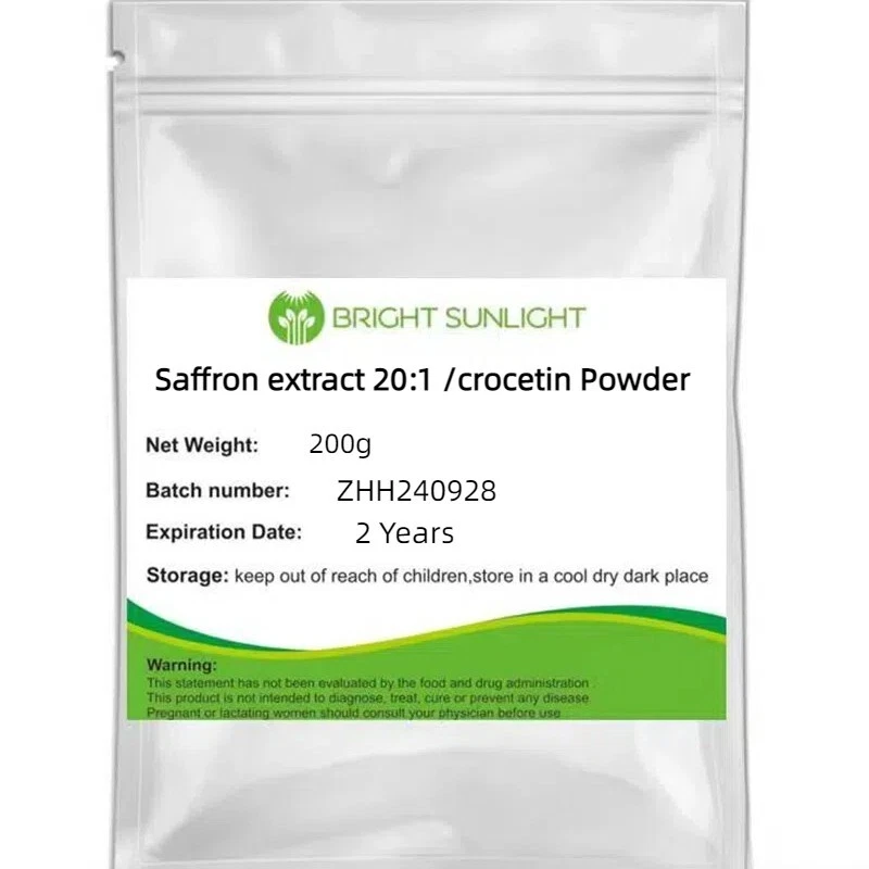 200gram Saffron extract 20:1/Crocus sativus/crocetin Powder for Health Product description: Saffron is arguably the most expensive herb in the world, due to amount of time and energy it takes to harvest. The term saffron actually refers to the dried stigmas and top of the saffron crocus, a type of flower similar to safflower. In China, saffron grows predominantly in the Tibet provinces. The stigmas are picked by hand and dried. It takes approximately 75, 000 saffron flowers to produce one pound of saffron stigma. In many cultures, saffron is used as a spice and for culinary purposes; however, it has many medicinal uses as well. In traditional Chinese medicine, saffron has a sweet taste and r meridians. Its main functions are to invigorate the blood, remove stagnation, clear the meridians and release toxins. It is typically used to treat conditions such as high fevers and related conditions that may be caused by pathogenic heat, and to help break up blood clots. There is also anecdotal evidence that saffron can inhibit the growth of some types of cancer cells. Small amounts of saffron can increase the incidence of contractions in pregnant women. Easy to drink => To brew with hot water + honey or gum syrup (2-3gram) Packing:200g Aluminum foil bag