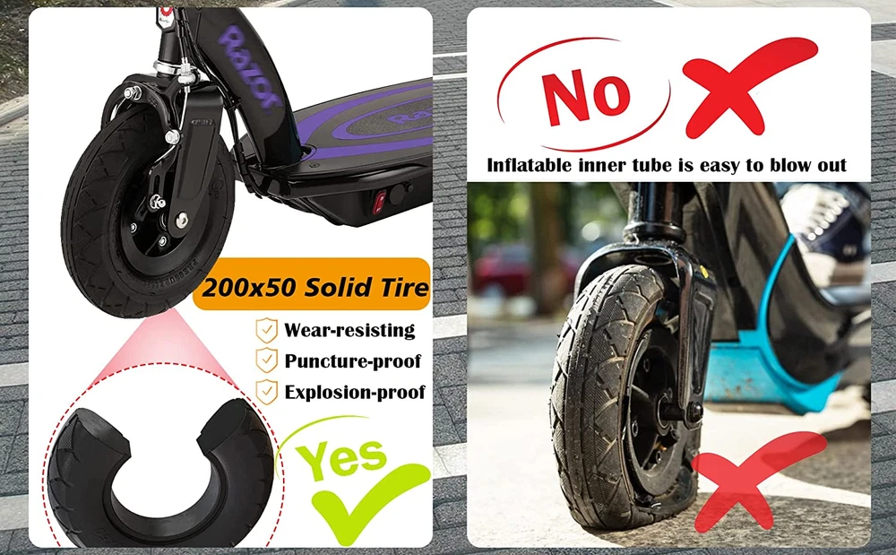 Store New Arrivals Add to Favorite View Feedback Contact 200 X 50 Scooter Tire for Razor E100 E125 E150 E175 E200 E200S E225 Electric Scooter Gas Scooter Dune Buggy Epunk, 200 X 50 Scooter Wheel Description Item model number Tubeless 200x50 tires Item Diameter 8 Inches Country of Origin China Rim Width 8 Inches Item Weight 1.28 Pounds Tread Type Non-Directional Construction Type Solid Seasons Year Round Vehicle Tire ISO Metric Size Description 200/100-8 Model 200 x 50 Scooter Tire Rim Size 8 Inches Tire Diameter 8 Inches Is Discontinued By Manufacturer No 【Application】200 x 50 Scooter Tire compatible with Razor E100 E125 E150 E175 Scooter (front wheel); For Razor e150 (V1-5) Scooters (front and rear wheel); For Razor E200/E200S/E225 Scooters (front and rear wheel); For Razor Dune Buggy (front and rear wheel); 200 x 50 Tire Also for Razor ePunk bike (front and rear wheel). 【Wear-resistant and Explosion-proof】200 x 50 Solid Rubber Tire made of high-quality solid rubber, this 200x50 tire is puncture-proof and resistant to wear and tear,Anti-slip,Explosion-proof,ensuring a long-lasting performance.200 x 50 Solid tire Safe in any season or weather condition. 200 x 50 Scooter Wheel Adapt to various road conditions. 【Safe and Reliable】200 x 50 Solid Scooter Tire with better shock absorption and obstacle passing ability, easily over speed bumps, effectively cope with rough road. 200 x 50 Tubeless tire resistant to wear and tear, ensuring a safe and dependable performance. 200x50 scooter tire solid Provides excellent traction and grip, you can be confident and in control while riding. 【Easy to Install】200x50 Solid Tire easy to install. This 200x50 Solid Ccooter Tire has a 3.5" inner diameter,for 2-wheel Smart Self Balancing Scooter, Electric Scooter. 200x50 Tires for scooter may fit other brand Gas Scooter Electric Scooter with 200x50 wheels. 【After-sales service】180 Days warranty. If you're looking for a dependable and puncture-proof scooter tire, this tubeless scooter tires 200x50 wheel is the perfect choice for you. Product Description 200 x 50 Scooter Tire 200x50 Solid Rubber Tire For Razor E100 E125 E150 E175 E200 E200S E225 Electric Scooter Gas Scooter Dune Buggy ePunk 200x50 Tire compatible with the following Razor scooters: 200x50 Scooter Tire For Razor E100 / E125 / E150 / E175 Scooter (front wheel) 200x50 Scooter Tire For Razor E150 (V1-5) Scooters (front and rear wheel) 200x50 Scooter Tire For Razor E200 / E200S / E225 Scooters (front and rear wheel) 200x50 Scooter Tire For Razor Dune Buggy (front and rear wheel) 200x50 Scooter Tire For Razor ePunk bike (front and rear wheel) 200 x 50 Solid Rubber Tire 200 x 50 Solid Rubber Tire made of high-quality solid rubber, ensuring a safe and dependable performance. This 200x50 tire is puncture-proof and resistant to wear and tear,Anti-slip,Explosion-proof,ensuring a long-lasting performance. 200 x 50 Solid tire Safe in any season or weather condition. 200 x 50 Scooter Wheel Adapt to various road conditions. 200 x 50 Solid Scooter Tire with better shock absorption and obstacle passing ability, easily over speed bumps, effectively cope with rough road. 200x50 scooter tire solid Provides excellent traction and grip, you can be confident and in control while riding. Electric Scooter 200x50 tires may also know as 200 x 50 off road tire,200 x 50 solid wheel,200 x 50 wheel,200x50 wheel,200x50 wheels,200x50 tire solid,tubeless scooter tires 200x50 wheel. Durable Anti-slip Wear-resisting Puncture-proof Explosion-proof Rapid Drainage Comfortable Ride Reduce Noise 200x50 Tires for scooter is especially useful on the Swagman scooter,and it may fit other Gas Scooter Electric Scooter with 200x50 wheels. 200x50 (8"x2") Solid tire for Razor Scooters, 200x50 Means the tire size, in milimeters, is 200mm x 50mm, or in inches, is 8" x 2". The market is rapidly being filled with all sorts of self-balancing scooters, hoverboards, or whatever you may call them. All of which need the proper size tires to ensure a fun and safe ride. Such is the case with this 200x50 solid tire, which features a 3.5" inner diameter;much different from several other popular hoverboards. Be sure to check the specifications on your current tires before ordering to ensure proper compatibility. ABOUT US We offer the best prices around on high quality products. Our E-store includes media such as books, movies, music and games while offering electronics, toys, sporting apparel, clothing, tools, general home, garden items and more. SHIPPING We are always working hard to ensure your package arrives as soon as possible. Please understand that some factors like weather, high postal traffic, and the performance of shipping companies are outside of our control. We offer free shipping to the lower 48 states and ship within 2 business days of payment, usually sooner. We do not accept P.O. Boxes. Please provide a physical address. For shipping outside of the continental USA, we only use eBay's Global Shipping Program.The item is shipped to KY and then sent to the rest of the world. International customers are responsible for all duties and taxes. Continue to check out in order to calculate costs for shipping the item to your country. Messages regarding eBay's Global Shipping Program MUST be directed at eBay EXCLUSIVELY. RETURNS We offer a 30-Day Return Policy on items which you are not completely satisfied with. You have the option for a full-refund or an exchange of the item. No returns are available on items shipped outside of the USA. PAYMENT We accept PayPal. CONTACT US This page content is yet to come Please ad us to your favorite seller and visit again later Thank You CUSTOMER SATISFACTION We try our very best to make sure every customer is completely satisfied. If there's a problem, message us! We're happy to help. WE ACCEPT Copyright © 2021 AutoDS. | All Rights Reserved