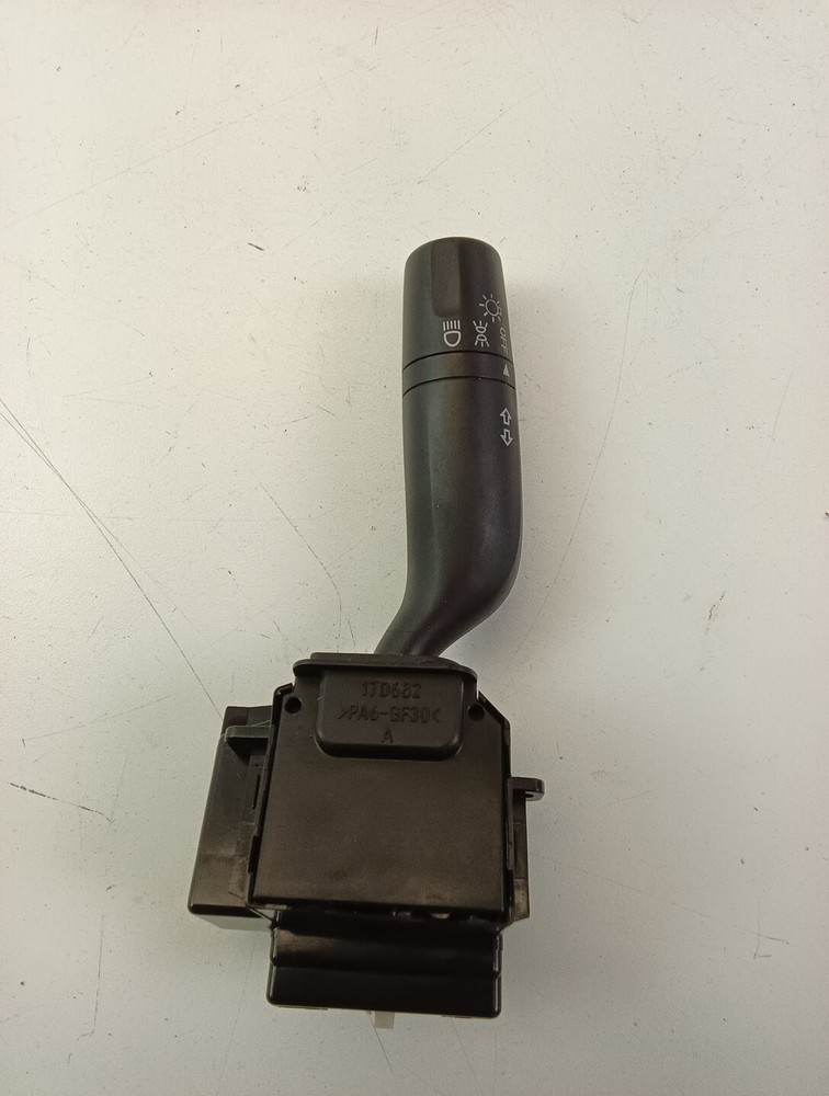 This is a steering column switch assembly for a 2010-2013 Mazda 3. It controls the turn signal and headlight lights. The switch is black and has the manufacturer part number BBM4-66-128, BBM4 66 128, BBM466128, and 17D682. It is compatible with left and front placement on the vehicle.