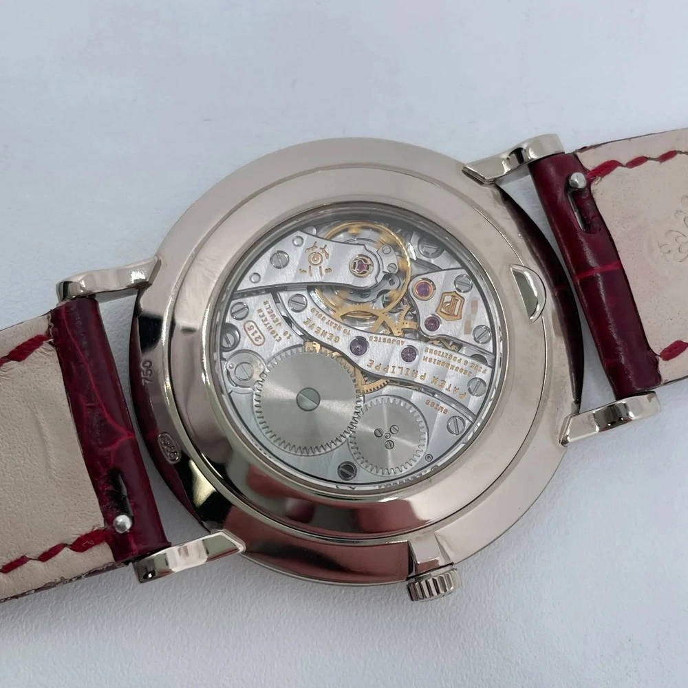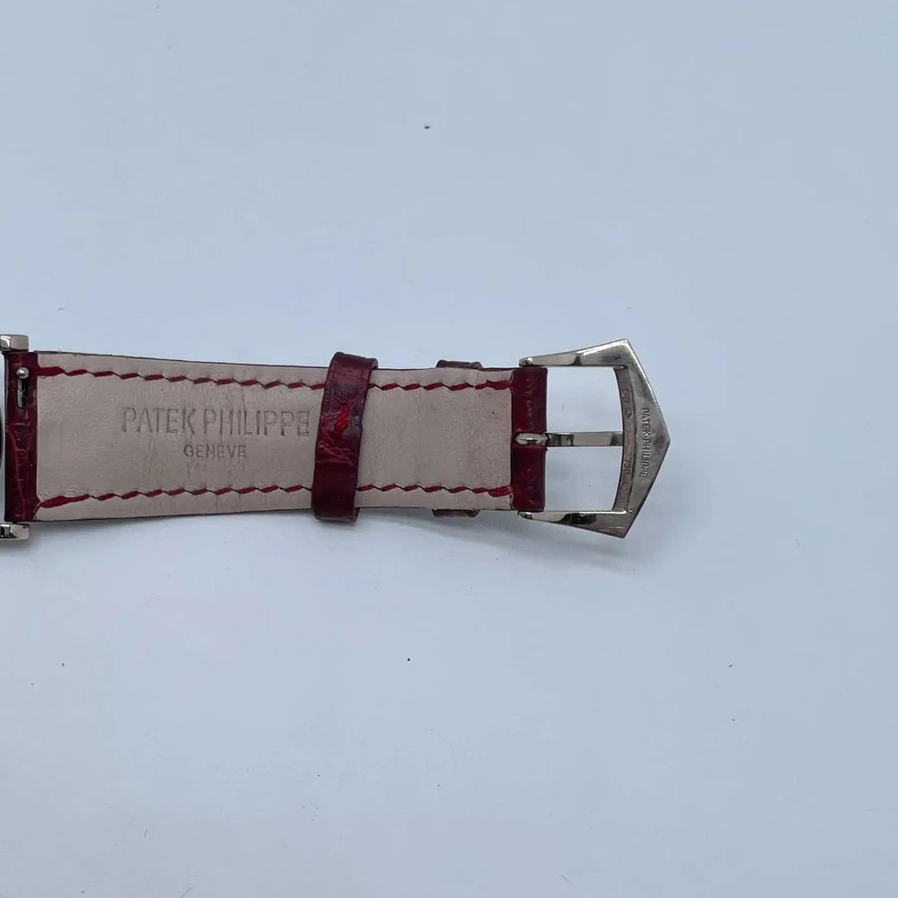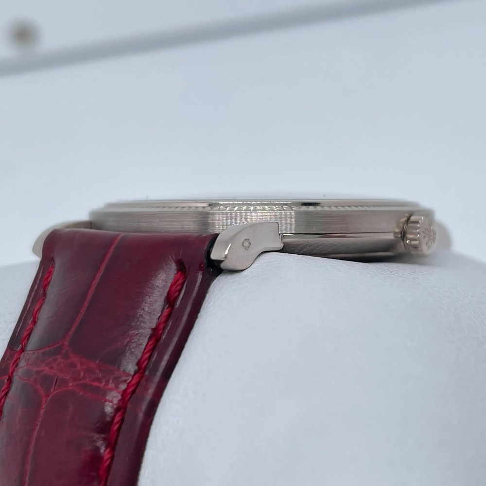Mint preowned condition. Clean dial and hands, the watch has been tested and calibrated and keeps time well. Original box and papers are not included. Backed by a 1-year warranty and a 30-day return window. 2010's Mint Patek Philippe 5119G-001 Calatrava 36mm 18k White Gold Manual Watch Description Mint preowned condition. Clean dial and hands, the watch has been tested and calibrated and keeps time well. Original box and papers are not included. Backed by a 1-year warranty and a 30-day return window. Ships from Address 608 5th Ave, STE 408 - New York New York, 10020 Phone 16465368182 Condition Excellent Good Fair Poor The movement is calibrated and keeps time well. The watch shows light signs of wear or scratches. Highlights Weight 52g Case Size 36 mm Wrist Fit 7.75 Inches Box No Papers No SKU 037345 General Info MSRP 21500 Brand Patek Philippe Type Wristwatch Department Men Model Number 5119G-001 Country/Region of Manufacture Switzerland Style Luxury Model Calatrava Vintage No Features/Other Details Year Manufactured 2010-2019 Customized No Handedness Right With Original Packaging No With Service Records No With Booklet No With Papers No SKU 037345 Features 12 Hour Dial, PushPull Crown, Small Seconds Subdial, Swiss Made, Swiss Movement, Water-Resistant, Fixed Bezel, Sapphire Crystal Band/Bracelet Details Band Color Red Band Material Leather Max Wrist Size 7.75 Inches Closure Buckle Band Type Two-Piece Strap Band Width 16 mm Lug Width 20 mm Wrist Fit 7.75 Inches Case Details Case Material White Gold Case Color White Water Resistance 30 m (3 ATM) Watch Shape Round Caseback Exhibition Case Finish Polished Case Size 36 mm Case Thickness 8 mm Bezel Details Bezel Type 12-Hour, Fixed Bezel Color White Display Dial Color White Display Analog Indices Roman Numerals Movement Movement Manual Number of Jewels 18 Jewels Movement Caliber 215 PS Shipping Warranty Return Policy FAQ All in stock items are shipped within one business day. Same day shipping is available upon request. Due to insurance purposes, all packages are shipped with a tracking number and signature is required. We do not ship to PO Boxes. Import duties, taxes, and charges are not included in the item price or shipping cost. These charges are the buyer's responsibility. Please check with your country's customs office to determine what these additional costs will be, prior to bidding or buying. All watches sold by Luxxwatches are covered with in-house warranty for a period of Watches that lose time, gain time, do not change day or date, or have any other signs of not working properly will be serviced under our warranty program.The Luxxwatches warranty does not cover any damage resulting from water damage or physical harm. Additionally, the warranty does not cover polish for the watch case, any damage to crystal, band, bezel, straps, screws, crown/stem, finishes, clasps/buckles which are a result of normal wear and tear. Any lost parts of the watch, including stones, is not covered with the warranty. Any damage incurred as a result of exceeding the limitations of the watch manufacturer’s water resistance guidelines will not be covered with the warranty. Any third-party repairs, outside modifications or customizations will void the warranty. All the items purchased from Luxxwatches are covered with a 30-day money back guarantee. If you are not fully satisfied with your purchase, you may exchange or return your item for a refund within 30 days of first receiving your item. Item must be in the same condition as it was received, and include all original booklets, box & packaging. Any signs of wear, water damage, or altering will result in refusal of your return.Special order items, such as items we do not have in our warehouse and are specially ordered from our distributor or items that have been customized, are non-returnable.We offer free returns on eligible items, please contact us for the return shipping label. How to start an automatic watch? It’s very important to wind an automatic watch properly, prior to its use. The initial wind provided may only last a short while, making the watch appear defective once it stops ticking. To ensure your watch functions to the fullest of its capabilities, wait for it to stop and then wind the watch counter-clockwise 15-20 times. Next, push the crown back, screwing it down to preserve the water-resistance. *Be mindful that excessively winding the watch may cause damages to the movement, so don’t overdo it. Unlike self-winding watches, the crown doesn't need to be wound on quartz models. If it still isn’t ticking, simply bring it by for a battery replacement. Why the watch is running slow? A watch can lose time for various reasons including, but not limited to a dying battery, which will cause the second-hand to begin jumping across several seconds at once instead of passing each individually, magnetization, causing tension between small parts within the movement and natural friction from the watch being worn. If the watch is a mechanical model (Automatic or Manual-wind) this can also be a sign that the watch needs to be overhauled. How to use a chronograph? Operating a Chronograph requires using the pushers on the side of the case. The top pusher is used to start and stop the chronograph hand while the one at the bottom is used to reset it. Once the top pusher is pressed, the hand will run continuously, which you can track using the accompanying sub-dial. In order to reset the chronograph, it has to be stopped first. Otherwise the button will do nothing when pressed. How to set the date & time? Whether you have a screw or push-down crown, setting the date and time is simple. If its a screw-down, unscrew it by turning it downward, counterclockwise prior to following these steps. Pull out the crown to the first integer to operate the date alone, allowing the time to continue ticking. Pulling the crown out farther, you’re then allowed to adjust the time, which also shifts the date after each 