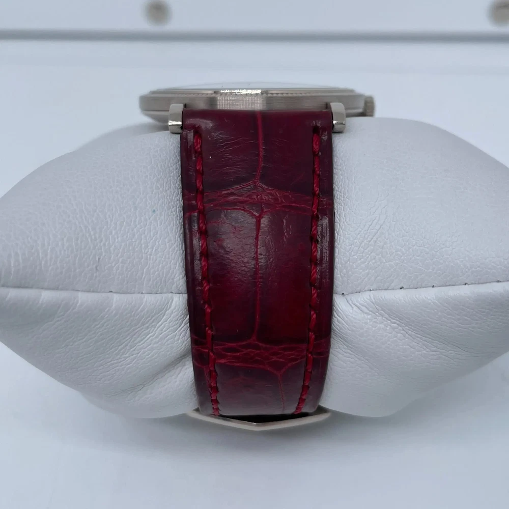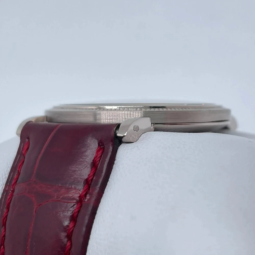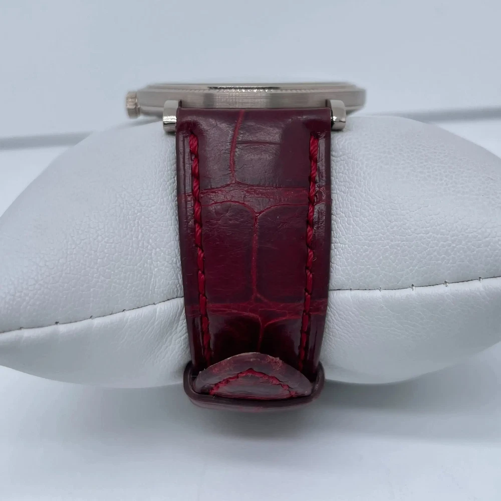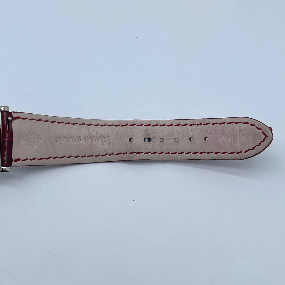 Mint preowned condition. Clean dial and hands, the watch has been tested and calibrated and keeps time well. Original box and papers are not included. Backed by a 1-year warranty and a 30-day return window. 2010's Mint Patek Philippe 5119G-001 Calatrava 36mm 18k White Gold Manual Watch Description Mint preowned condition. Clean dial and hands, the watch has been tested and calibrated and keeps time well. Original box and papers are not included. Backed by a 1-year warranty and a 30-day return window. Ships from Address 608 5th Ave, STE 408 - New York New York, 10020 Phone 16465368182 Condition Excellent Good Fair Poor The movement is calibrated and keeps time well. The watch shows light signs of wear or scratches. Highlights Weight 52g Case Size 36 mm Wrist Fit 7.75 Inches Box No Papers No SKU 037345 General Info MSRP 21500 Brand Patek Philippe Type Wristwatch Department Men Model Number 5119G-001 Country/Region of Manufacture Switzerland Style Luxury Model Calatrava Vintage No Features/Other Details Year Manufactured 2010-2019 Customized No Handedness Right With Original Packaging No With Service Records No With Booklet No With Papers No SKU 037345 Features 12 Hour Dial, PushPull Crown, Small Seconds Subdial, Swiss Made, Swiss Movement, Water-Resistant, Fixed Bezel, Sapphire Crystal Band/Bracelet Details Band Color Red Band Material Leather Max Wrist Size 7.75 Inches Closure Buckle Band Type Two-Piece Strap Band Width 16 mm Lug Width 20 mm Wrist Fit 7.75 Inches Case Details Case Material White Gold Case Color White Water Resistance 30 m (3 ATM) Watch Shape Round Caseback Exhibition Case Finish Polished Case Size 36 mm Case Thickness 8 mm Bezel Details Bezel Type 12-Hour, Fixed Bezel Color White Display Dial Color White Display Analog Indices Roman Numerals Movement Movement Manual Number of Jewels 18 Jewels Movement Caliber 215 PS Shipping Warranty Return Policy FAQ All in stock items are shipped within one business day. Same day shipping is available upon request. Due to insurance purposes, all packages are shipped with a tracking number and signature is required. We do not ship to PO Boxes. Import duties, taxes, and charges are not included in the item price or shipping cost. These charges are the buyer's responsibility. Please check with your country's customs office to determine what these additional costs will be, prior to bidding or buying. All watches sold by Luxxwatches are covered with in-house warranty for a period of Watches that lose time, gain time, do not change day or date, or have any other signs of not working properly will be serviced under our warranty program.The Luxxwatches warranty does not cover any damage resulting from water damage or physical harm. Additionally, the warranty does not cover polish for the watch case, any damage to crystal, band, bezel, straps, screws, crown/stem, finishes, clasps/buckles which are a result of normal wear and tear. Any lost parts of the watch, including stones, is not covered with the warranty. Any damage incurred as a result of exceeding the limitations of the watch manufacturer’s water resistance guidelines will not be covered with the warranty. Any third-party repairs, outside modifications or customizations will void the warranty. All the items purchased from Luxxwatches are covered with a 30-day money back guarantee. If you are not fully satisfied with your purchase, you may exchange or return your item for a refund within 30 days of first receiving your item. Item must be in the same condition as it was received, and include all original booklets, box & packaging. Any signs of wear, water damage, or altering will result in refusal of your return.Special order items, such as items we do not have in our warehouse and are specially ordered from our distributor or items that have been customized, are non-returnable.We offer free returns on eligible items, please contact us for the return shipping label. How to start an automatic watch? It’s very important to wind an automatic watch properly, prior to its use. The initial wind provided may only last a short while, making the watch appear defective once it stops ticking. To ensure your watch functions to the fullest of its capabilities, wait for it to stop and then wind the watch counter-clockwise 15-20 times. Next, push the crown back, screwing it down to preserve the water-resistance. *Be mindful that excessively winding the watch may cause damages to the movement, so don’t overdo it. Unlike self-winding watches, the crown doesn't need to be wound on quartz models. If it still isn’t ticking, simply bring it by for a battery replacement. Why the watch is running slow? A watch can lose time for various reasons including, but not limited to a dying battery, which will cause the second-hand to begin jumping across several seconds at once instead of passing each individually, magnetization, causing tension between small parts within the movement and natural friction from the watch being worn. If the watch is a mechanical model (Automatic or Manual-wind) this can also be a sign that the watch needs to be overhauled. How to use a chronograph? Operating a Chronograph requires using the pushers on the side of the case. The top pusher is used to start and stop the chronograph hand while the one at the bottom is used to reset it. Once the top pusher is pressed, the hand will run continuously, which you can track using the accompanying sub-dial. In order to reset the chronograph, it has to be stopped first. Otherwise the button will do nothing when pressed. How to set the date & time? Whether you have a screw or push-down crown, setting the date and time is simple. If its a screw-down, unscrew it by turning it downward, counterclockwise prior to following these steps. Pull out the crown to the first integer to operate the date alone, allowing the time to continue ticking. Pulling the crown out farther, you’re then allowed to adjust the time, which also shifts the date after each 