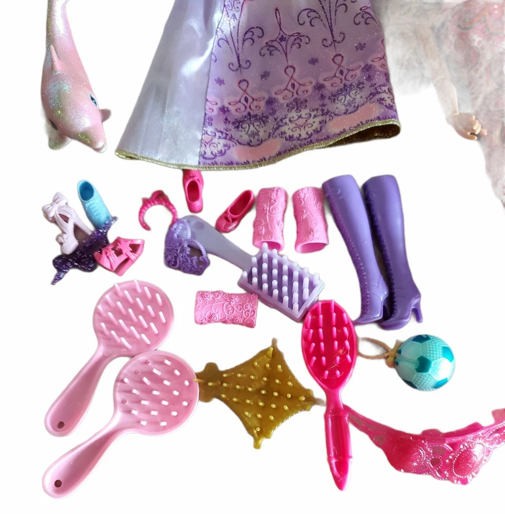 2011 Barbie Fashion Wardrobe Carry Case Used With Dolls and Accessories. Condition is "Used". Please note some accessories are not a complete pair ( shoes etc.) And top sticker is slightly coming up. Also all 3 dolls need a good hair brushing ( see pictures)