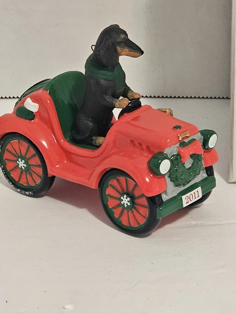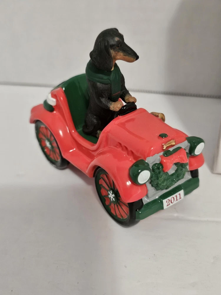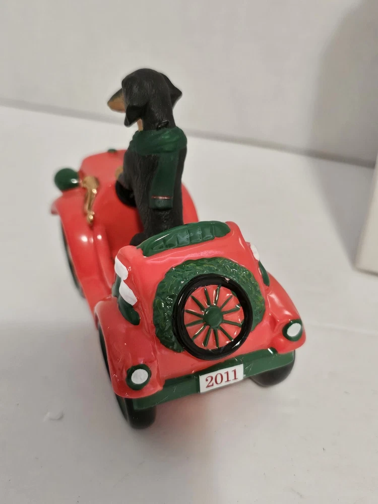 2011 The Danbury Mint Dachshund Delight Christmas Ornament Rockin Roadster CL. Condition is Used. Shipped with USPS Ground Advantage.