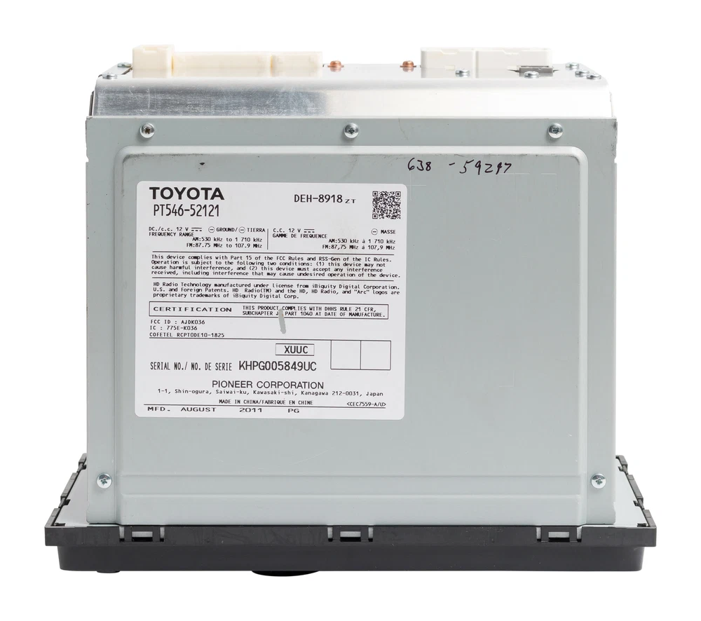 Largest Inventory of Factory Car Audio in the USA! 2011-14 Toyota Yaris AM FM Receiver MP3 WMA Bluetooth CD Player PT546-52121 2011 2012 2013 2014 Toyota Yaris AM FM Bluetooth Receiver with MP3 WMA CD Player No Code Required Part Number: PT546-52121 Interchange Part Number: 638-59297 Compatible Part Number: Option Code: None Free Shipping to All 50 States! Free Live Technical Support! 90 Day Warranty Included! ------------------------------- This is a Professionally Remanufactured AM FM Bluetooth Receiver with MP3 WMA CD Player that fits 2011-2014 Toyota Yaris . Please see the pictures for more cosmetic details. No Code Required . This item has been cleaned, serviced as needed, and thoroughly checked. The function is in 100% working order! This unit is being sold as a REPLACEMENT ONLY! The part number is PT546-52121 . If you do not have this exact part number or compatible part number currently in your vehicle, it will likely NOT WORK . If you are unsure of your part number, contact us with your VIN and they should be able to provide you with the correct part number. They may look the same and have the same plugs but data streams may be different, not allowing them to code. For example, external amps are used in some cars and will not allow interchange, etc. As you can see from our feedback, we package carefully and ship promptly via UPS or FedEx Ground. Please verify that this is the item you require before purchase. The item you receive will be as pictured and described. Thank you for your purchase! ------------------------------- FOR APPLICATION ASSISTANCE OR TECHNICAL SUPPORT, CONTACT US 9am - 6pm EST, Monday - Friday ------------------------------- Welcome to our eBay store! To make your purchase as simple and easy as possible, please refer to the store policies listed below. CHECKOUT Click Buy It Now at the top of this listing to immediately proceed with the checkout and payment process. PAYMENT We accept the following forms of payment. PayPal Credit Card Phone Payment SHIPPING Free Shipping to all 50 states! Radios will generally be sent via UPS to the lower 48. Some smaller items and radios going to AK or HI will be sent via USPS Priority or First Class Mail. International purchases are sent First Class International when possible and First Class Priority or UPS International otherwise. Most items are shipped within 1-3 days of processing but there are sometimes short delays due to final testing or build procedures. Please contact if your purchase is time sensitive. CONTACT If you have any questions or concerns before or after purchase, please do not hesitate to contact us M-F 9a to 6p Est. All our products have a 90 day warranty with free live tech support!