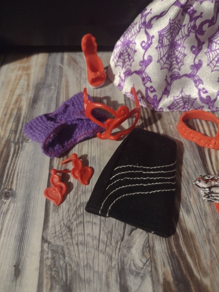 Although listed as used This outfit is new out of package I am selling my personal collection I would open my doll and accessories boxes and store them these pieces have never been on a doll or played with. Clear dress form not included shoe is a single I misplaced the other shoe. The closures have not snagged the clothing no stains or damage. Like new condition.Sold as shown no exchanges or returns. Please see photos for condition of items. Please message me if you have any questions.Thank you for visiting my store.