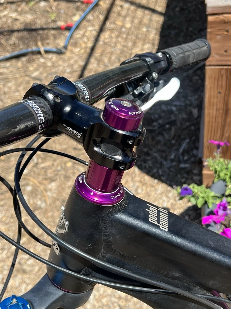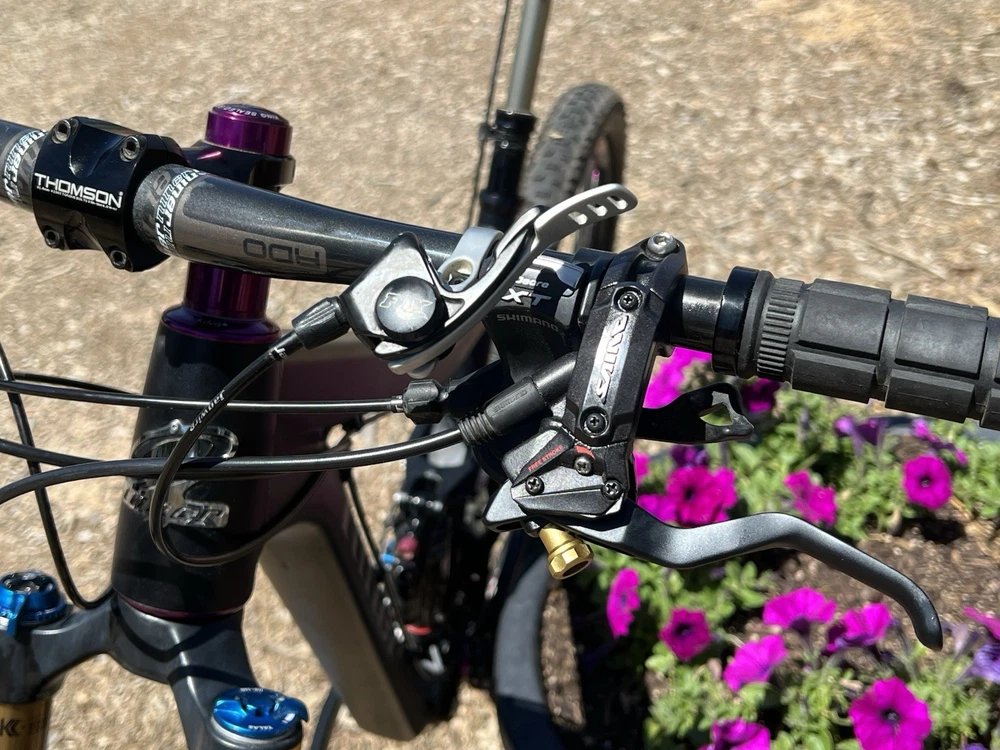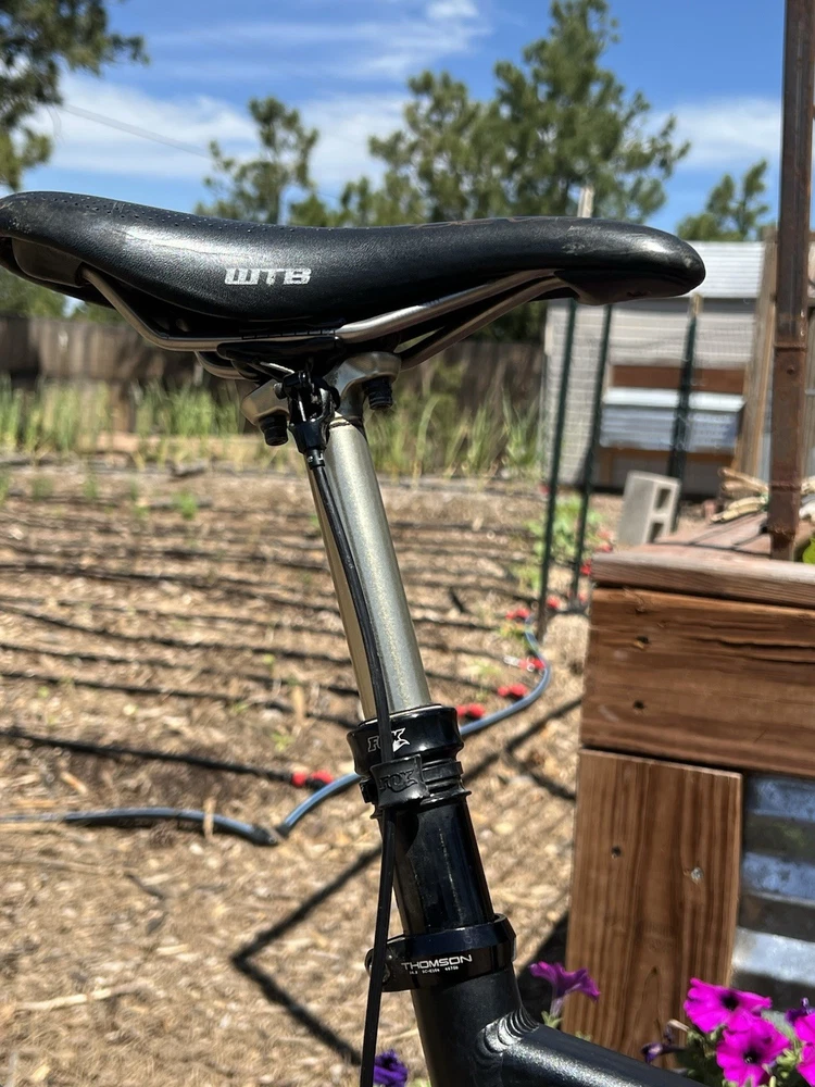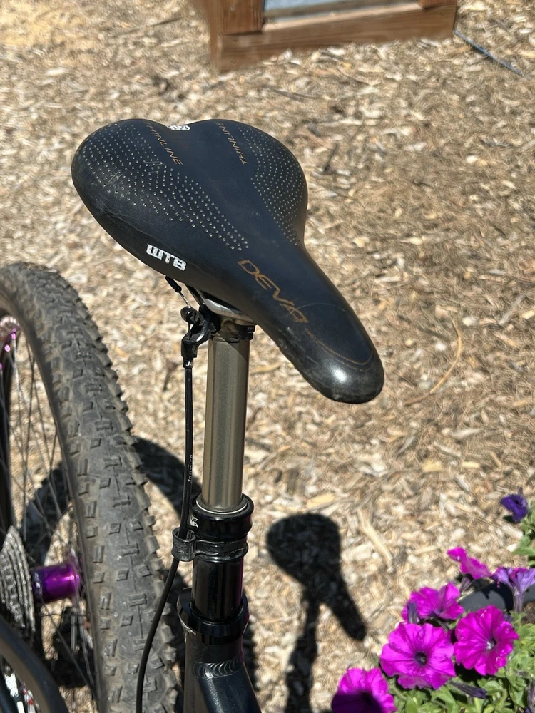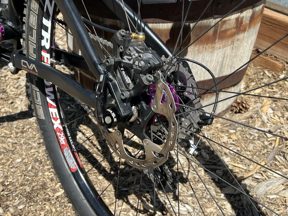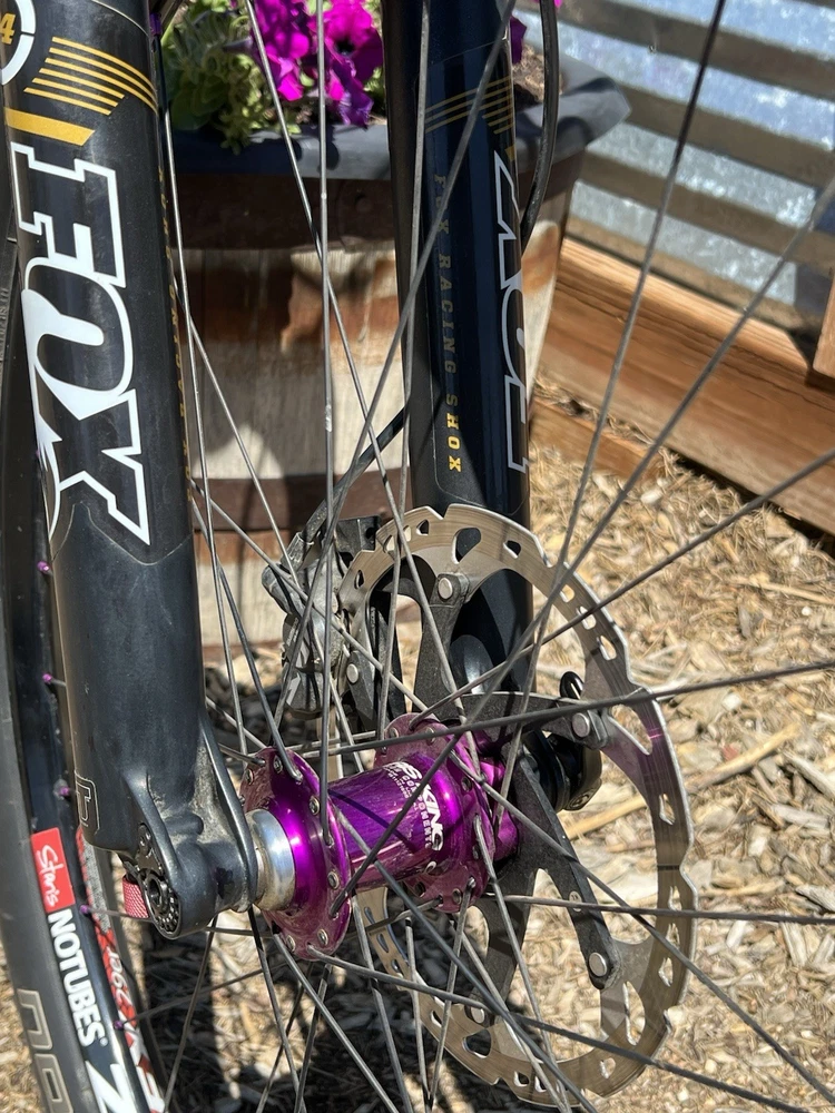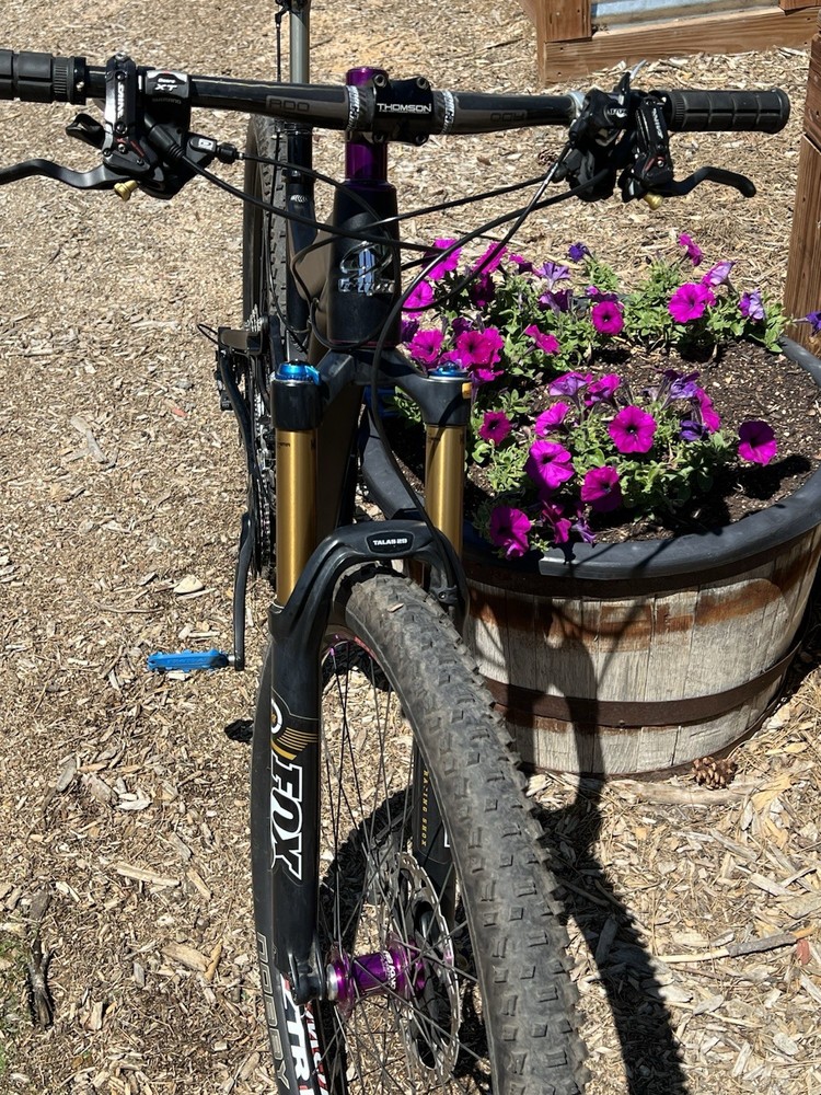 2012 Niner WFO size Medium with custom hand built wheels and custom spec. Very low miles because the owner wasn’t that into riding. Shimano Dynasis 2x10 speed with Wolf goat link and large cog. Tubeless tires will need fresh sealant but tires hold air. Seat post will need air before use. Shock and fork will need air before use. Drivetrain shifts great. Pedals and saddle are not included.