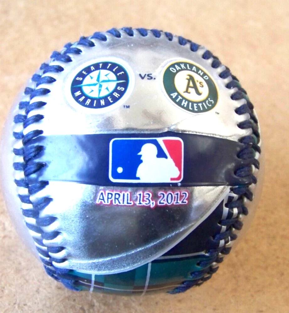 2012 Opening Day Seattle Mariners Oakland Athletics A's baseball ball Safeco Field This MLB licensed regulation sized baseball is silver / teal / purple with black stitching. Excellent condition. Minor nicks and marks. Don’t forget to click on my "Stores" link, next to my eBay name, to see other items I currently have listed for sale, or you can copy and paste this address into your browser: stores.ebay.com/highcountrycollectibles SHIPPING INFORMATION Shipping to U.S. addresses is FREE! HIGH COUNTRY COLLECTIBLES Since 1989 – A LEADER IN THE DENVER SPORTS MEMORABILIA MARKET. Check out my other auctions and listings, and keep an eye out for the different, unusual, and EXCLUSIVE items available nowhere else but from High Country Collectibles.