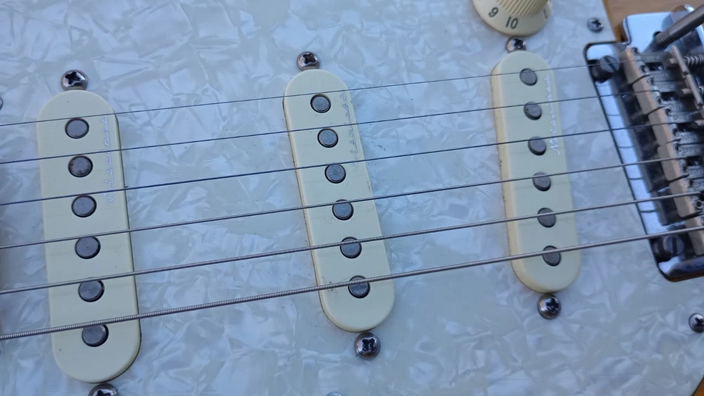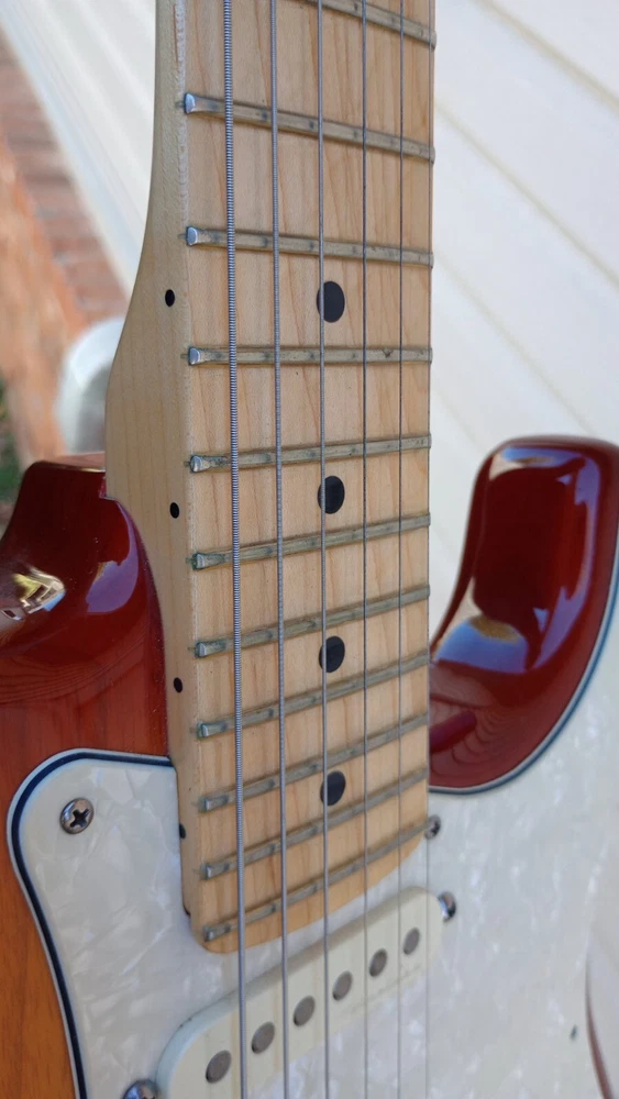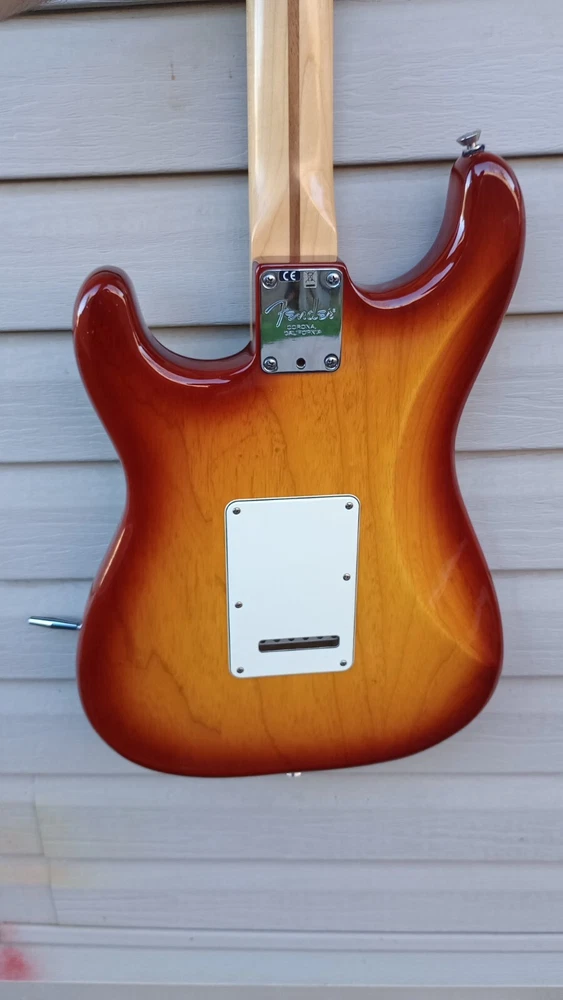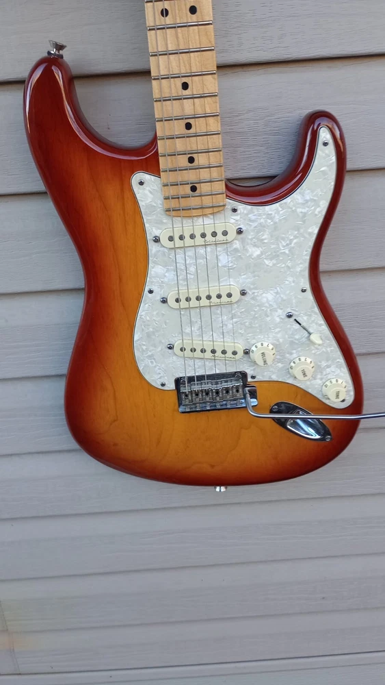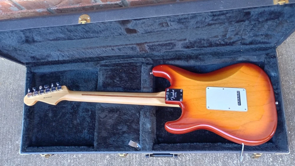 Used , but excellent condition!! Not much use at all. This is the Ash body series. All original except Fender noiseless pickups installed and the pearloid pickguard. Hard case is not original and has some wear, but is 100% functional. In Excellent Overall Condition Finish Shows Some Very Light Surface Scratches that are hard to see Maple Neck And Fretboard Ash Body USA Made