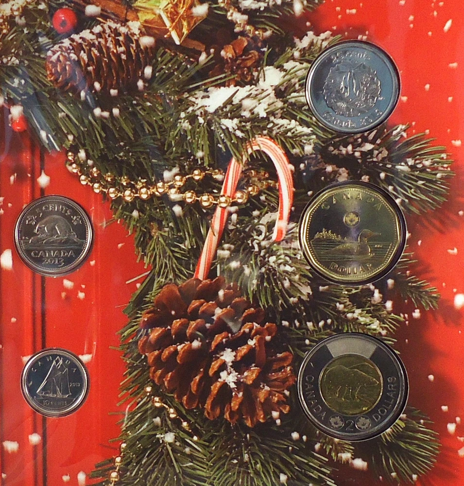 <div style="text-align:center"><img src="http://ti2.auctiva.com/sw/java.gif" border="0"><br><table align="center"><tr><td><a style="text-decoration:none" href="http://emporium.auctiva.com/okranch" target="_blank"><img src="http://ti2.auctiva.com/sw/browse2.gif" border="0"></a></td><td height="21px" valign="middle" align="center"><font face="arial" size="2"><b><a href="http://emporium.auctiva.com/okranch" target="_blank">okranch</a> Store</b></font></td></tr></table></div> SKU# OK1212481970EB 2013 Five-coin Holiday Gift Set from the Royal Canadian Mint A great Christmas & holiday for everyone on your list! Available in this set only! - Includes a unique engraved holiday design on the 25-cent piece! Description Each coin set includes Canada’s 2013 traditional uncirculated coins with a unique engraved holiday themed design on the 25-cent piece! In addition to the 25-cent piece (quarter), this set includes the following current Canadian coins: 5-cent, 10-cent, $1, & $2 pieces. The entire set comes in a unique and festive holiday card. Special features · Includes uncirculated coins from 2013 - 5¢, 10¢ and the new $1 and $2 coins with enhanced security features. · A special struck 25¢ piece available only in this Gift Set. · Space to insert a personalized message. · Envelope enclosed to enable immediate mailing with a personalized gift message. Packaging The coins are set in a blister in the inside panel of the card, with the special 25¢ coin placed on the upper half of the card to highlight the festive design and be visible through the card window. Shipping & Handling Fast, free shipping & handling via USPS First Class Mail to all U.S. addresses! USPS Priority Mail & Priority Mail Express are also available for an additional charge International shipping via eBay's Global Shipping Progra m. Additional Information OK Ranch sells fine & fashion jewelry, gifts, fine collectible & investment coins, collectible home decor, books & DVDs for all ages, and other items through our eBay store. Check out my other items ! Be sure to add me to your favorites list ! Sign up for my email newsletters by adding my eBay Store to your Favorites.