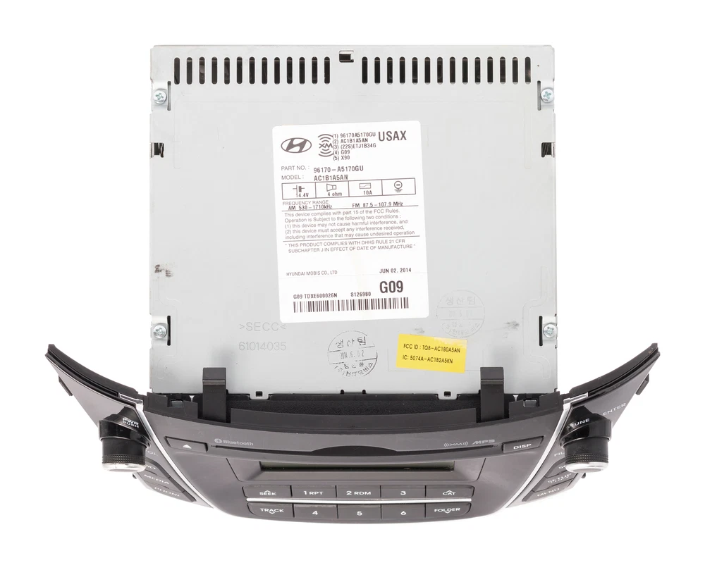 Largest Inventory of Factory Car Audio in the USA! 2013-2015 Hyundai Elantra AM FM Sirius XM MP3 Bluetooth CD Player 96170-A5170GU 2013 2014 2015 Hyundai Elantra AM FM Receiver Sirius XM Bluetooth MP3 Player with Single-Disc CD Player No Unlock Code Required Part Number: 96170-A5170GU Interchange Part Number: 638-72132 Compatible Part Number: 96170A5170 Option Code: None Free Shipping to All 50 States! Free Live Technical Support! 90 Day Warranty Included! ------------------------------- This is a Professionally Remanufactured AM FM Receiver Sirius XM Bluetooth MP3 Player with Single-Disc CD Player that fits 2013-2015 Hyundai Elantra . Please see the pictures for more cosmetic details. No Unlock Code Required . This item has been cleaned, serviced as needed, and thoroughly checked. The function is in 100% working order! This unit is being sold as a REPLACEMENT ONLY! The part number is 96170-A5170GU . If you do not have this exact part number or compatible part number currently in your vehicle, it will likely NOT WORK . If you are unsure of your part number, contact us with your VIN and they should be able to provide you with the correct part number. They may look the same and have the same plugs but data streams may be different, not allowing them to code. For example, external amps are used in some cars and will not allow interchange, etc. As you can see from our feedback, we package carefully and ship promptly via UPS or FedEx Ground. Please verify that this is the item you require before purchase. The item you receive will be as pictured and described. Thank you for your purchase! ------------------------------- FOR APPLICATION ASSISTANCE OR TECHNICAL SUPPORT, CONTACT US 9am - 6pm EST, Monday - Friday ------------------------------- Welcome to our eBay store! To make your purchase as simple and easy as possible, please refer to the store policies listed below. CHECKOUT Click Buy It Now at the top of this listing to immediately proceed with the checkout and payment process. PAYMENT We accept the following forms of payment. PayPal Credit Card Phone Payment SHIPPING Free Shipping to all 50 states! Radios will generally be sent via UPS to the lower 48. Some smaller items and radios going to AK or HI will be sent via USPS Priority or First Class Mail. International purchases are sent First Class International when possible and First Class Priority or UPS International otherwise. Most items are shipped within 1-3 days of processing but there are sometimes short delays due to final testing or build procedures. Please contact if your purchase is time sensitive. CONTACT If you have any questions or concerns before or after purchase, please do not hesitate to contact us M-F 9a to 6p Est. All our products have a 90 day warranty with free live tech support!