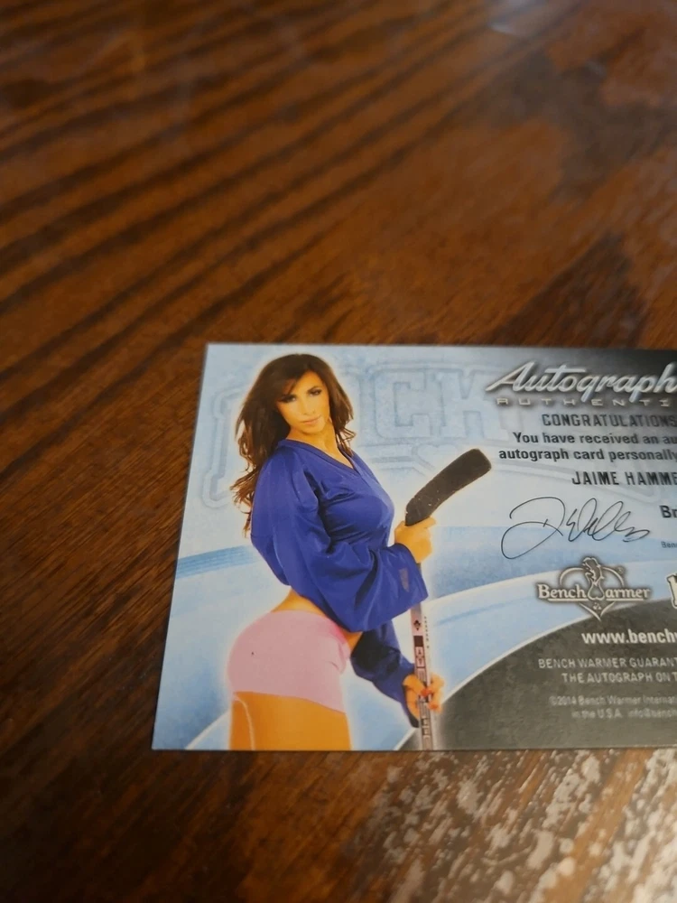 2014 Benchwarmer Hockey Autograph Gold Foil Card Jaime Hammer #38 Auto Playboy Tiny (only five feet), but gorgeous, buxom, and shapely brunette knockout Jaime Hammer was born on May 16, 1982 in Chicago, Illinois. She's of German and Italian descent. Hammer attended the progressive Francis W. Parker School in Chicago and graduated from Arizona State University in 2004 with a degree in Communications. During her senior year at Arizona State Jaime both graced the cover of and was featured in the spring 2004 edition of Playboy's College Girls, which was the first of many Playboy newsstand special editions she has been featured in. Hammer eventually moved to Los Angeles, California in order to pursue a career in modeling and entertainment. She was the Playboy Cyber Girl of the Week for May 23, 2005 and the Cyber Girl of the Month for September of that same year. Moreover, Jaime was the Twistys Treat of the Month for June, 2006; the Danni Girl of the Month for September, 2007; and Pet of the Month in the November, 2007 issue of Penthouse. Other publications Hammer has been featured in are Perfect 10, Exercise & Health, and Open Your Eyes. She relocated to Las Vegas, Nevada in June, 2008. P enthouse Pet of the Month, November 2007. Please, look at all the pictures. Please check out my other eBay accounts... https://www.ebay.com/usr/kimmyrael https://www.ebay.com/usr/matlac99 https://www.ebay.com/usr/lacr6837 https://www.ebay.com/usr/malac9440 https://www.ebay.com/usr/lacr_3567 https://www.ebay.com/usr/lacroki8 https://www.ebay.com/usr/lacroki9 Shipping only to the continental US unless you contact me first. Will combine shipping!!!