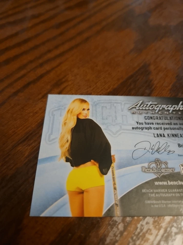 2014 Benchwarmer Hockey Autograph Gold Foil Card Lana Kinnear #61 Auto Playboy Lana Kinnear is best known for her role as Lana Star a professional wrestler on Wow Superheroes. Lana has also made numerous appearances on the Jimmy Kimmel show in comedic roles. In 2016 Lana landed a recurring role playing Sandy the gold digging wife of Gooch in the new Cameron Crow showtime series "Roadies". Lana also played opposite Robert Downey Jr. in the first installment of the Iron Man franchise. Lana lives in Southern California and in her spare time she trains her Weimaraner in field events. Played for the New York Euphoria in the Lingerie Women's Football Bowl. Please, look at all the pictures. Please check out my other eBay accounts... https://www.ebay.com/usr/kimmyrael https://www.ebay.com/usr/matlac99 https://www.ebay.com/usr/lacr6837 https://www.ebay.com/usr/malac9440 https://www.ebay.com/usr/lacr_3567 https://www.ebay.com/usr/lacroki8 https://www.ebay.com/usr/lacroki9 Shipping only to the continental US unless you contact me first. Will combine shipping!!!