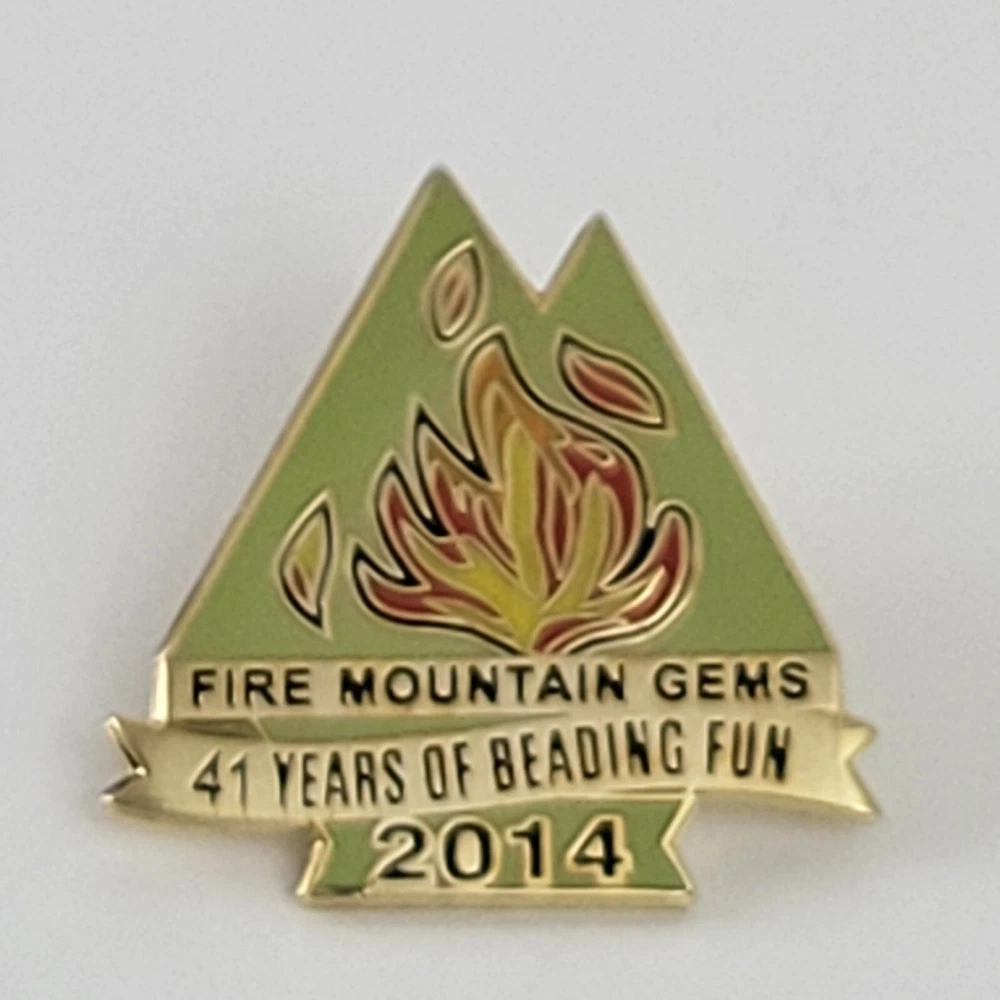 If you are missing the 2014 pin from the Fire Mountain Gems Bead Show, this is the pin for you. It measures 1 1/8" wide and tall.