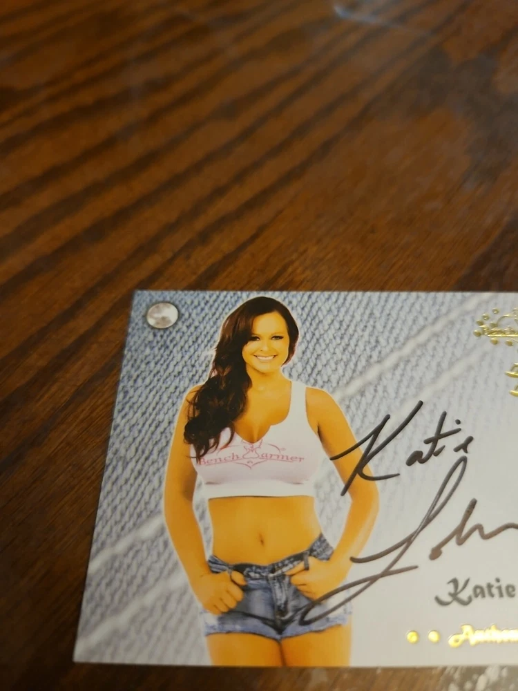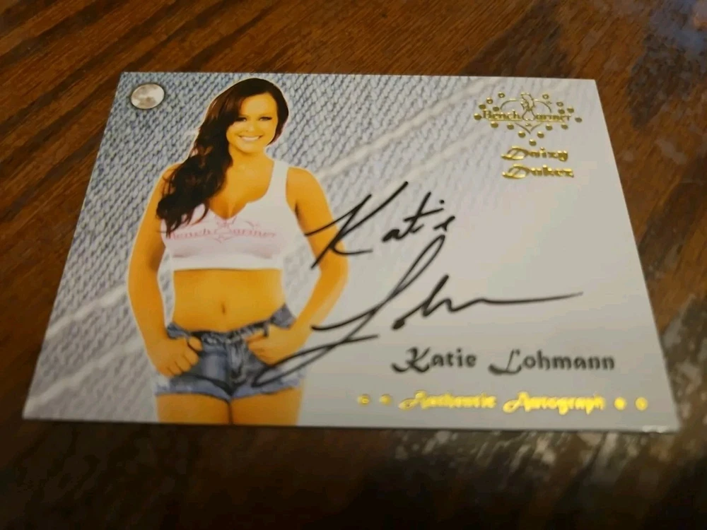 2015 Benchwarmer Daizy Dukez Autograph Gold Foil Card Katie Lohmann Auto Playboy Katie Lohmann was born in Scottsdale, Arizona, on January 29, 1980. She is the youngest of three children (sister Christine and brother Michael). Her father Dan is a successful accountant and has owned several businesses. Her mother Sharon is the head of Payroll for Citibank. Her parents divorced in 1992. Katie discovered early on that she loved performing on stage. Her first performance was singing a song from the Walt Disney classic The Little Mermaid (1989) , at the age of eight, and she received a standing ovation. In 1989 a casting call took place for the new Disney Mickey Mouse show, The All New Mickey Mouse Club (1989) . Although she had never worked on a TV show, Katie felt that this would be the perfect opportunity and was told she was exactly what they were looking for. However, her mother felt she was too young and the show would interfere with her education. Katie decided to take her mother's advice and wait until she was finished with school before pursuing her career. Ten years later (2000) she graduated from high school and relocated to Los Angeles. She captured Hollywood by storm with her platinum blonde hair and beautiful hazel eyes. Katie had already been modeling for several years prior to moving to Los Angeles, and within a short time had been on the cover of numerous magazines all over the world. It wasn't long after that she came to the attention of Playboy magazine, and they decided to make her a centerfold. By the age of 20 she landed her first acting gig on Rude Awakening (1998) , and soon found herself in such films as Tomcats (2001) _, Auto Focus (2002) and Dorm Daze (2003) , starring Tatyana Ali and Danielle Fishel . As for her current projects, she recently shot a pilot for the WB entitled "Hot Mama", with Gina Gershon , and has a role on Creating America's Next Hit Television Show (2004) , directed by Richard Kline . Please, look at all the pictures. Please check out my other eBay accounts... https://www.ebay.com/usr/kimmyrael https://www.ebay.com/usr/matlac99 https://www.ebay.com/usr/lacr6837 https://www.ebay.com/usr/malac9440 https://www.ebay.com/usr/lacr_3567 https://www.ebay.com/usr/lacroki8 https://www.ebay.com/usr/lacroki9 Shipping only to the continental US unless you contact me first. Will combine shipping!!!