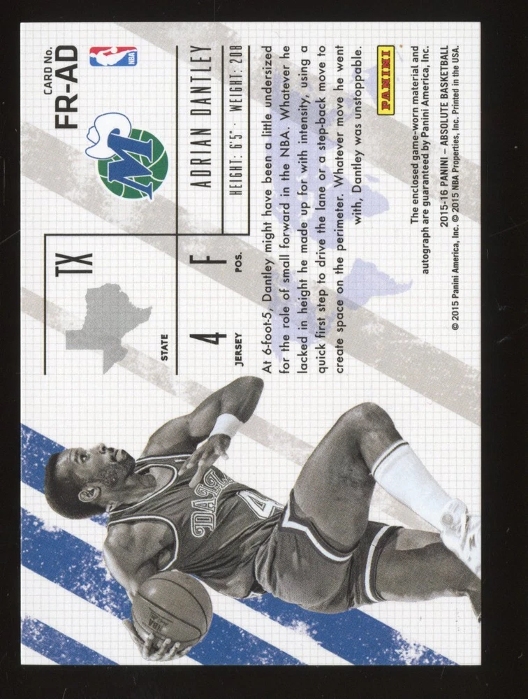 You are purchasing a 2015-16 Panini Absolute Adrian Dantley #FR-AD Jersey Auto /65. You will receive the exact item in the photographs. Thank you for looking. Listed With Mascot .
