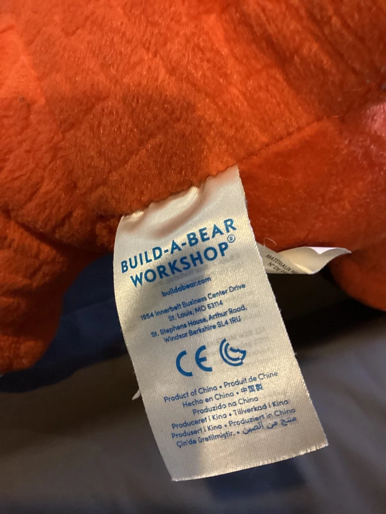 The product is a 2016 Build-A-Bear Workshop plush stuffed animal in the shape of a Shanghai Dragon. This exclusive Disneyland item features an orange color and is part of the franchise's collection. Made of plush material, the stuffed animal is suitable for all occasions and is designed in the theme of a dragon.