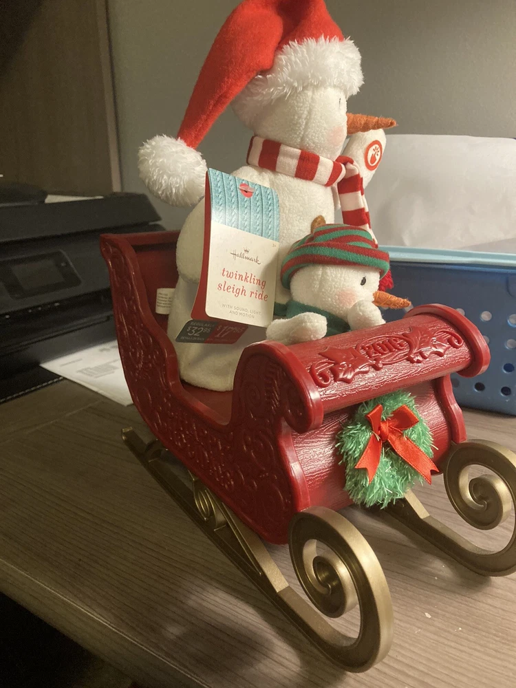 2016 hallmark jingle pals twinkling sleigh ride. Animated, plush snowman and sleigh. Comes new with tags and includes batteries. Item has been tested and works perfectly.