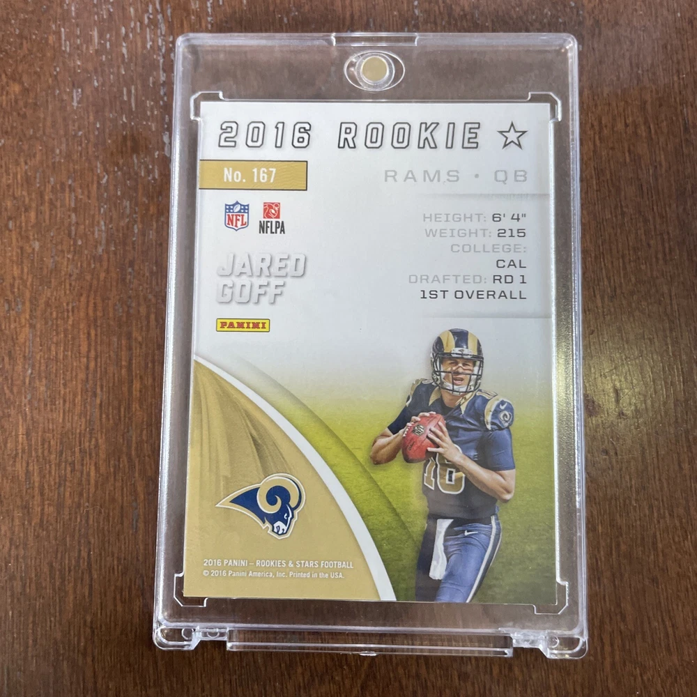 League:National Football League (NFL)Team:California Golden Bears, Detroit Lions, Los Angeles RamsType:Sports Trading CardFeatures:Rookie, Serial Numbered, Short PrintParallel/Variety:RedAutographed:NoSeason:2016Card Number:167Manufacturer:PaniniSport:FootballSet:2016 PaniniPlayer/Athlete:Jared Goff