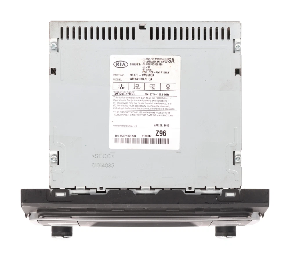 Largest Inventory of Factory Car Audio in the USA! 2016-2017 Kia Rio AM FM Radio Bluetooth XM Single Disc CD Player 96170-1W960CA 2016 2017 Kia Rio AM FM Radio Bluetooth XM Single Disc CD MP3 Player No Unlock Code Required Professionally remanufactured item in 100% working order. Item has flaking of the finish on the volume knobs Part Number:96170-1W960CA Interchange Part Number:638-73648 Compatible Part Number: Option Code: Free Shipping to All 50 States! Free Live Technical Support! 90 Day Warranty Included! ------------------------------- This is for a professionally remanufactured AM FM Radio Bluetooth XM Single Disc CD MP3 Player that fits a 2016-2017 Kia Rio . Item is in great cosmetic condition, and 100% working order. Please see the pictures for more cosmetic details. No Unlock Code Required . This item has been cleaned, serviced as needed, and thoroughly checked. The function is in 100% working order! This unit is being sold as a REPLACEMENT ONLY! The part number is 96170-1W960CA . If you do not have this exact part number or compatible part number currently in your vehicle, it will likely NOT WORK . If you are unsure of your part number, contact us with your VIN and they should be able to provide you with the correct part number. They may look the same and have the same plugs but data streams may be different, not allowing them to code. For example, external amps are used in some cars and will not allow interchange, etc. As you can see from our feedback, we package carefully and ship promptly via UPS or FedEx Ground. Please verify that this is the item you require before purchase. The item you receive will be as pictured and described. Thank you for your purchase! ------------------------------- FOR APPLICATION ASSISTANCE OR TECHNICAL SUPPORT, CONTACT US 9:00a - 6:00p EST, M-F ------------------------------- My family has been in the car radio business virtually from the beginning. My grandfather started the business back in the early 1930's. I have been involved since the 1950's with factory training from Ford, GM, and Chrysler. I started buying and selling items on eBay back in the late 1990's and have enjoyed the experience so much I decided to move the radio business into it as well. I was amazed after some searches at the pricing and quality I was seeing of the factory car radios on eBay.Lots of junkyards with huge amounts of negative feedback or radio specialists with crazy-high pricing. We offer quality,clean, factory radios at a low price. Some of our radios are purchased on closeout from GM, Ford, Chrysler. We also buy in quantity, removed radios from car dealers all over the country. You will not be buying 2or 3 water damaged radios to get one good one (read some of the negative feedback the junkyards have from some very frustrated buyers).Give us a shot! Buy smart the first time. Life is short! Welcome to our eBay store! To make your purchase as simple and easy as possible, please refer to the store policies listed below. CHECKOUT Click Buy It Now at the top of this listing to immediately proceed with the checkout and payment process. PAYMENT We accept the following forms of payment. PayPal Credit Card Phone Payment SHIPPING Free Shipping to all 50 states! Radios will generally be sent via UPS to the lower 48. Some smaller items and radios going to AK or HI will be sent via USPS Priority or First Class Mail. International purchases are sent First Class International when possible and First Class Priority or UPS International otherwise. Most items are shipped within 1-3 days of processing but there are sometimes short delays due to final testing or build procedures. Please contact if your purchase is time sensitive. CONTACT If you have any questions or concerns before or after purchase, please do not hesitate to contact us M-F 9a to 6p Est. All our products have a 90 day warranty with free live tech support!