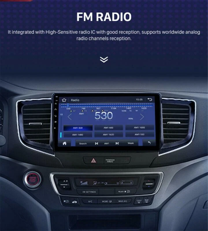 Product Description 2016-2018 Fit For Honda Pilot Stereo Radio GPS NAVIGATION 10.1 inch Android 10.0 10.1inch 1GB+16GB Android 10.0 Car Radio Multimedia Video Player Navigation GPS For Honda pilot 2016-2018 Fit for Honda pilot 2016-2018 Please check the center control of the original car is consistent with our picture, otherwise it will not be suitable for your car.Thank you OS:Android 10.0 operation system. CPU: High quality Quad-core 1.6GHz Coretex-A7 Hard Disk: 16GB RAM: 1GB DDR3 Screen: 10.1 inch 2.5D multi-touch screen with smooth operation, high sensitivity and abundant interaction for the better view of your road ahead. Resolution: 1024*600 Capacitive or Resistance Screen: Capacitive WiFi: Built-in WiFi Modem Internet Online Entertainment: Online Video, TV, Movie, Music, Radio, Video Chat Online Navigation: Online Google Maps Navigating Online Games: Yes, online play or you can download it from google play store Online Communication: WeChat, Twitter, Facebook, Skype, Gmail, Whatsapp etc. Audio Format: MP3/WMA/MP2/OGG/AAC/MA4/FLAC/APE/WAV etc. Could play via song list Radio surport: FM DVR:Support (NEED TO BUY SEPARATELY,Not included) DAB:Support(DAB+ BOX NEED TO BUY SEPARATELY,Not included) Support Mirror Link function: iPhone and android smartphone Built-in bluetooth, phone book and BT music Supported languages: English French German Indonesian Malaysian Czech Danish Austrian Spanish Filipino Croatian Italian Latvian Lithuanian Dutch Norwegian Polish Romanian Finnish Swedish Vietnamese Vietnamese Turkish Bulgarian Russian Ukrainian Bengali Thai Nepali Korean Japanese Package included 1 x Host 1 x Power harness 1 x RCA cable 2 x USB cable 1 x CAM cable 1 x GPS Antenna eBay Cross Border Trade powered by ChannelEffect