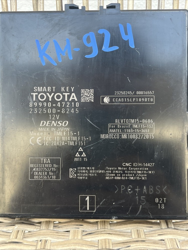 Good fully working condition No crack broken or damage, have small scratches (see pictures) Fast shipping 📦📦📦 The product is a 2016-2018 Toyota Prius Smart Key Computer Control Module OEM 89990-47211. It is a genuine Toyota part made in Japan specifically for the Prius model. It is an Anti-Theft System Smart Key Computer Control Module with OEM input connection, programming required, and easy installation. The module includes various features such as a wireless door lock, alarm, and immobilizer. It has a clip-on mounting style and comes with multi-terminal quantities. Made of plastic, this control module is designed for the front placement on the vehicle and does not have a protection lock.
