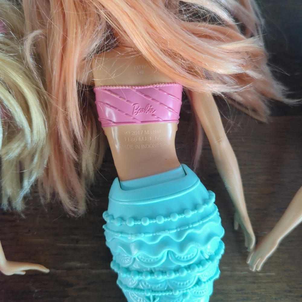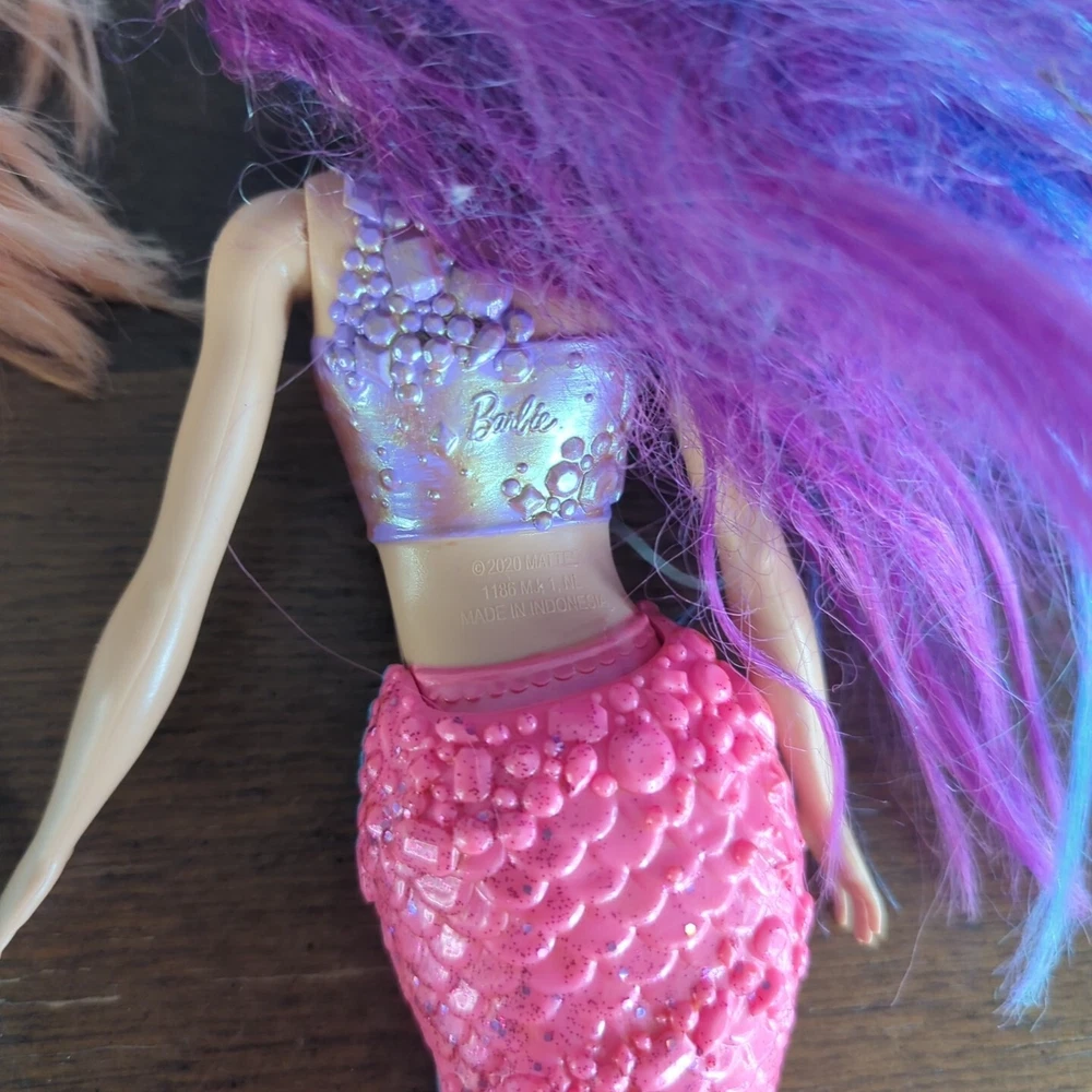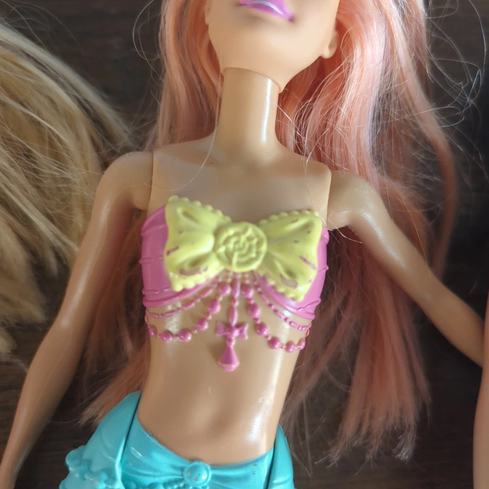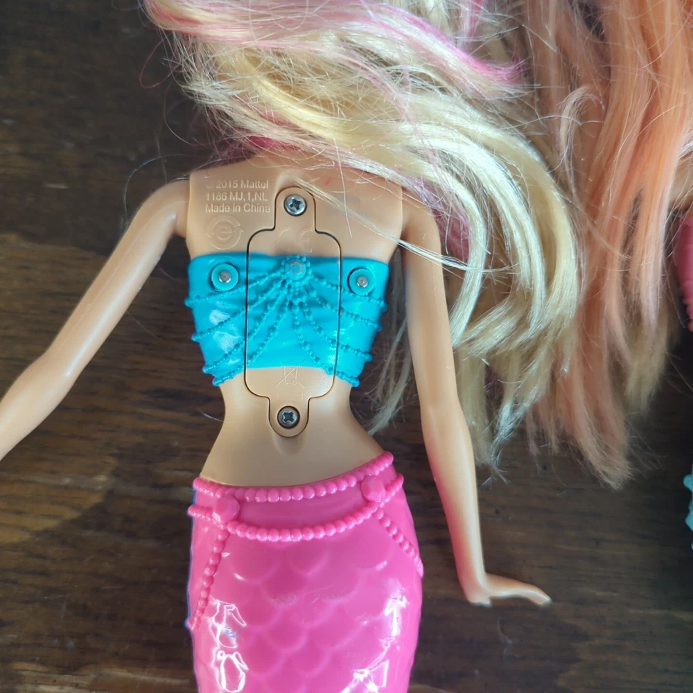 This is a lot of mermaid Barbie dolls. One has lights that do work. One has hair that needs some work. Has glue? Stuck in it