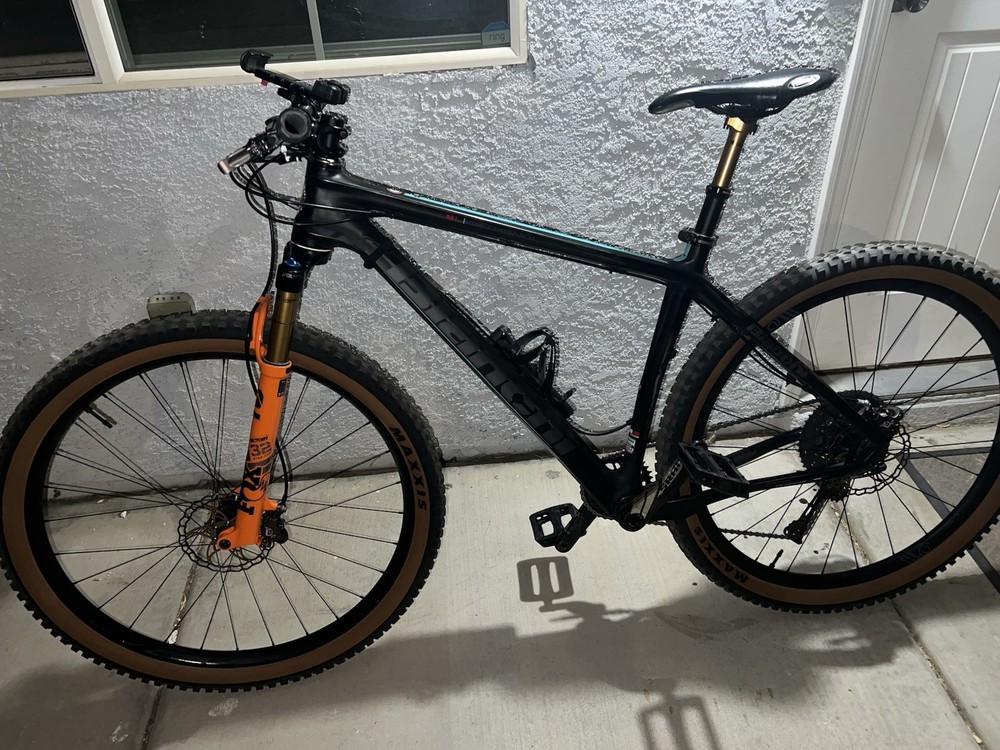 Bianchi Methanol Carbon 29er – High-End MTB – FOX / SRAM / XT / Industry Nine Up for sale is a Bianchi Methanol 29er in size Large, built with top-tier components and ready for anything from XC to aggressive trail riding. This is a premium carbon mountain bike that’s been upgraded throughout. Specs: Frame: Full carbon fiber – lightweight and responsive Fork: FOX 32 (100mm travel) Dropper Post: FOX Transfer – smooth and reliable Drivetrain: Shimano XT 11-speed (1x11) Cranks: SRAM Carbon Brakes: Hayes Dominion – recently installed new pads Handlebars: Race Face carbon Wheels: Carbon Race Face front / Industry Nine rear Tires: Brand new Maxxis Minion DHR II 2.4" (set up tubeless) This bike is fast, climbs with ease, and descends with confidence. Whether you're racing or just hitting your favorite trails, the Methanol delivers. Condition: Used but very well maintained. All components are functioning perfectly. Minor cosmetic scuffs from normal use.